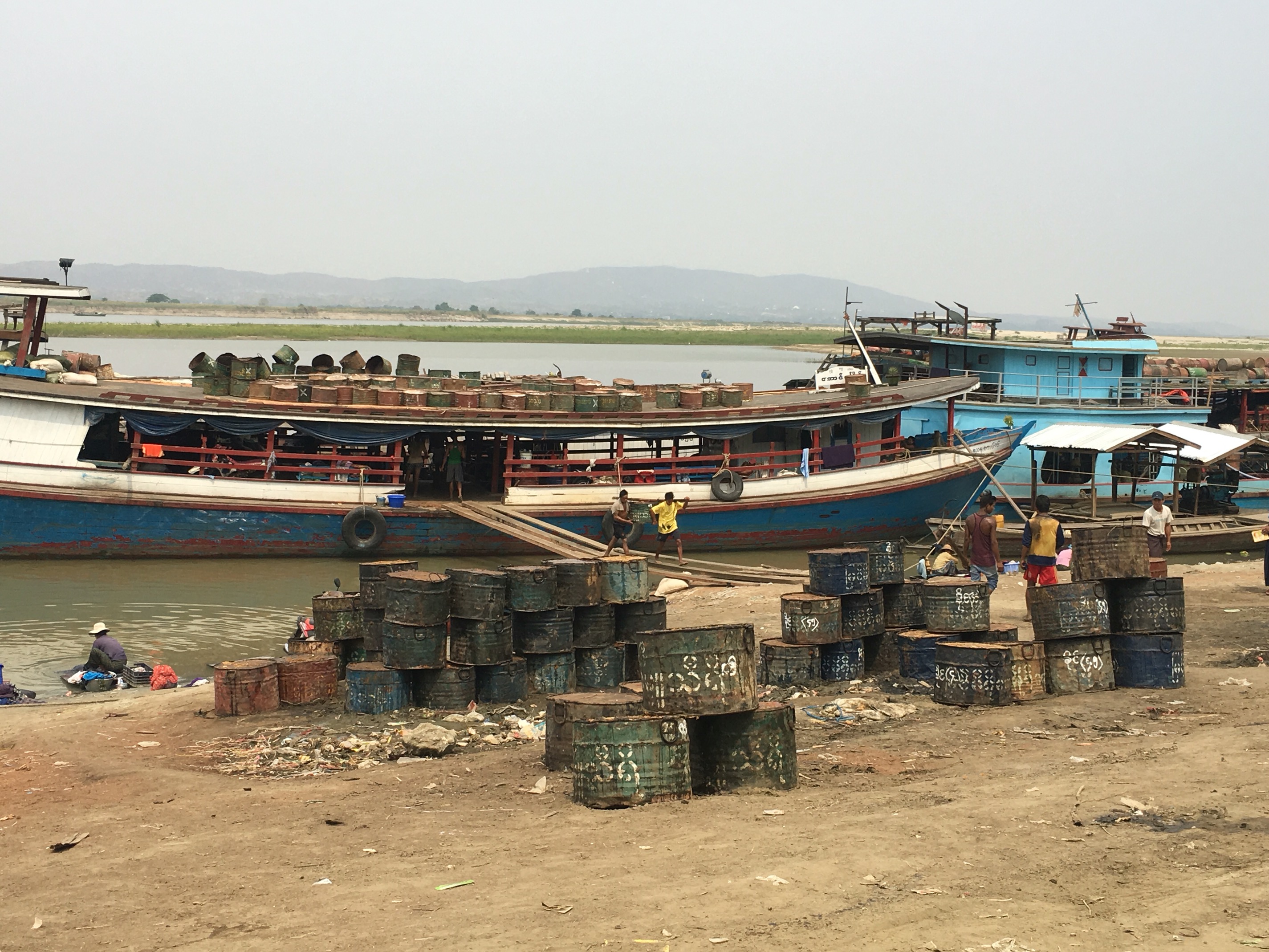 For my last day in Myanmar, I hiked a mountain barefoot with my pack that seems to be getting heavier by the day, ate lunch at a local restaurant on the river (I will spare you some details, but just mention it included Chicken which you will see soon in my market photos…), watched barrels of sugar being unloaded from the cargo boats, meandered through the local market, toured more pagodas, then hopped a plane back to Thailand.