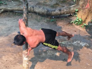 Next, we took the trail to the spring where we found a friendly local husband/wife who were cooking lunch and heading up some jungle games. It was somewhat of a mix between Ninja Warrior and Wipeout. The first challenge was a walk a Beerlao bet on walking across a log bridge…you make it free beer, you fall in the spring, you buy the beer. He made it look so easy…. After messing around and taking a swim, we had some amazing fried rice followed by more games. Just some good jungle fun!