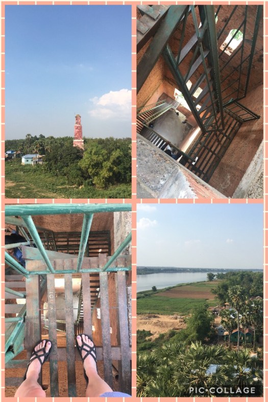 And last, we visited the Old French lookout tower built in the 1920’s when they had control over Cambodia and the Mekong. Chhay asked if I wanted to climb it….sight unseen I agreed. It was a bit sketchy, but worth it for the view!!!