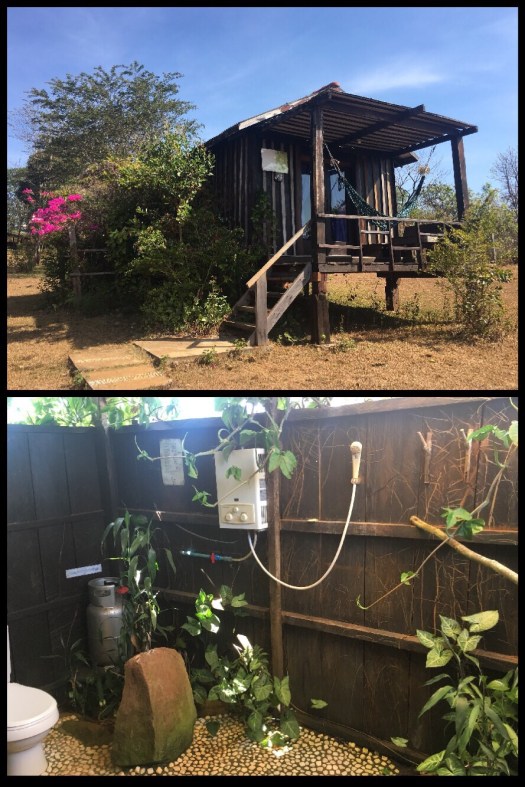 I found an amazing place in Sen Moromon at The Nature Lodge where I got a private bungalow with a sweet outdoor bathroom! It is cute and cozy with a hammock on the porch and some new “friends” inside! I was surprised to see someone had eaten my toilet paper when I woke up the first morning, but I guess that’s just how they ROLL here! 😆