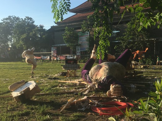 Since Anton was now trapped in the town for several more hours until the festival wound down, he offered to take me out and enjoy the party. He knew right where to go and got us up in the front row to watch the ogoh-ogoh displays where groups from the community carry them out and run wildly through the crowds. I was knocked down a couple of times, but it was so exciting to be right in the center of the action! The monsters were so big, they actually had guys with poles to lift the power lines up to get them through the streets….this was where I stepped away a bit..😬!