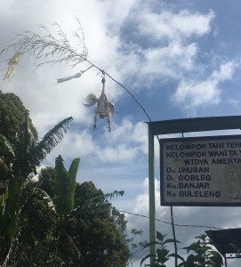 In the town of Munduk, it is a Nyepi tradition for each family to sacrifice a chicken and hang it out front of their home for a couple of weeks to keep evil spirits away. There were hundreds of these along the road!