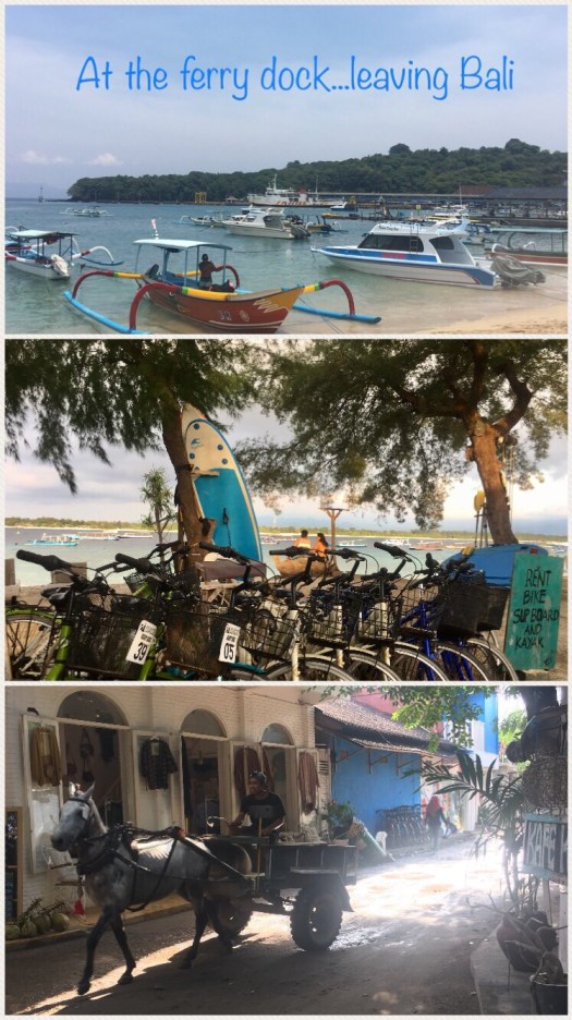 My first couple of days on Gili Trawangan have been fun and refreshing! There are only horse carts and bicycles, no motorized vehicles allowed! I took a boat here from Bali and we got lucky! A big pod of dolphins joined us, swimming alongside the boat playing and jumping as we neared the islands. This set a great tone for what was ahead!