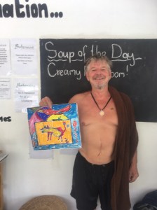 The first person I met was Gerbrand, an amazing Dutch artist. We shared a relaxing evening together having dinner, a few drinks, and then he pulled out his art supplies! What? Who travels with all of this fun stuff…..I will definitely add some paper and colored pencils to my next pack! Late in the evening, another yogi arrived, Simon from Germany. He sat down and chatted with us while we were creating and we quickly became friends. Things were starting to come together!