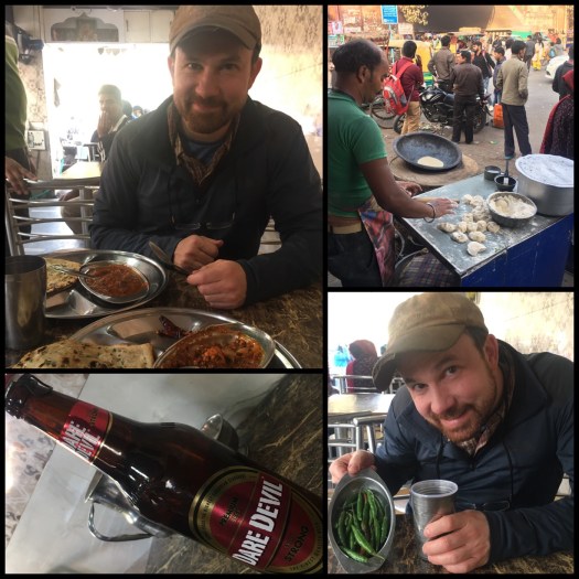 We stopped at a little street corner restaurant near the train station and had one of our best meals yet. The food was quick, hot, and delicious, but the ambiance was even more amazing. We watched the veggie chopper chop veggies with a rusty knife that resembled a hack saw blade as the cow in the background got scolded for eating the potted plants in front of the empty police booth. Looking the other way we had our meal being cooked over a fire heated grill and our naan was fried out on the main road as the “to go” food was served from another counter. The waiter was great too. He was one of the nicest guys we have talked to and was the first to listen to what we wanted instead of telling us we were wrong and should instead order what he wanted us to have (a crazy thing here in India!).