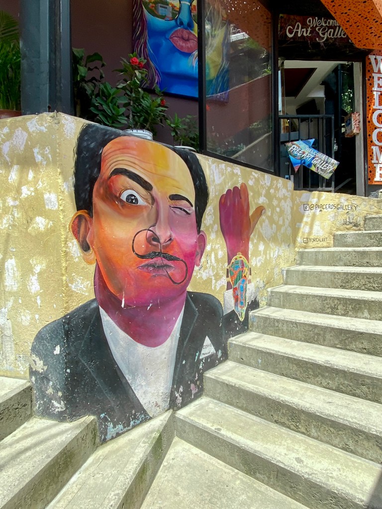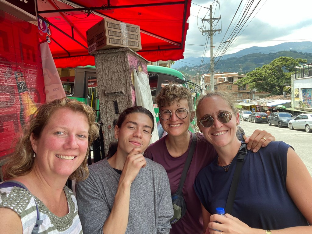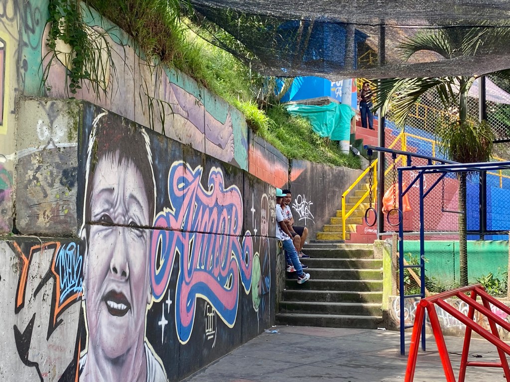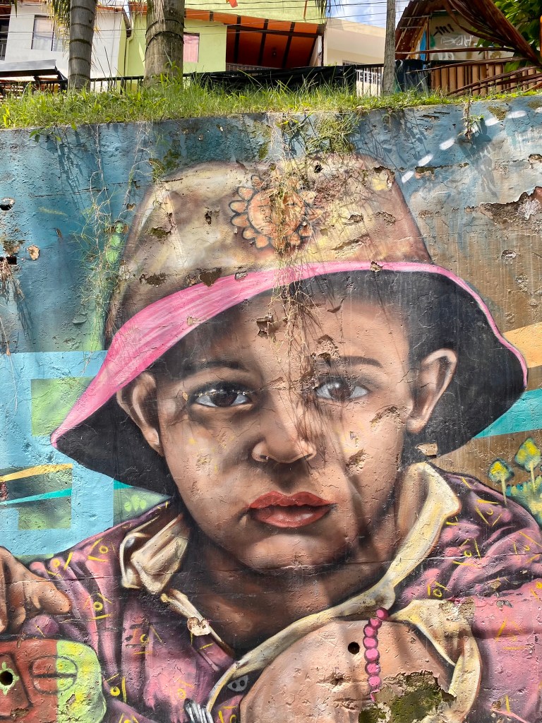 Day 2, I booked a small morning tour to Comuna 13, an amazing, resilient neighborhood that is reviving itself through art, education, and passion. My local tour guide was Alex, a 23-year-old guy, who is wise well beyond his years. He has an inspiring story, growing up during much unrest in the country, he lost his blood family when he was a baby due to them being unwilling to leave during the guerilla takeover. He was adopted and has been studying different languages and cultures since he was 10. He has taught himself English, Russian, and Japanese all from You Tube! Amazing! Aside from that, he is so passionate about Colombian history and the history of his neighborhood. The tour included me and two great German ladies. Alex took us up the stairs, winding through the community to see the unbelievable graffiti art, street rappers, and children’s play areas. I believe you will see the passion of the community from the pics! Enjoy!