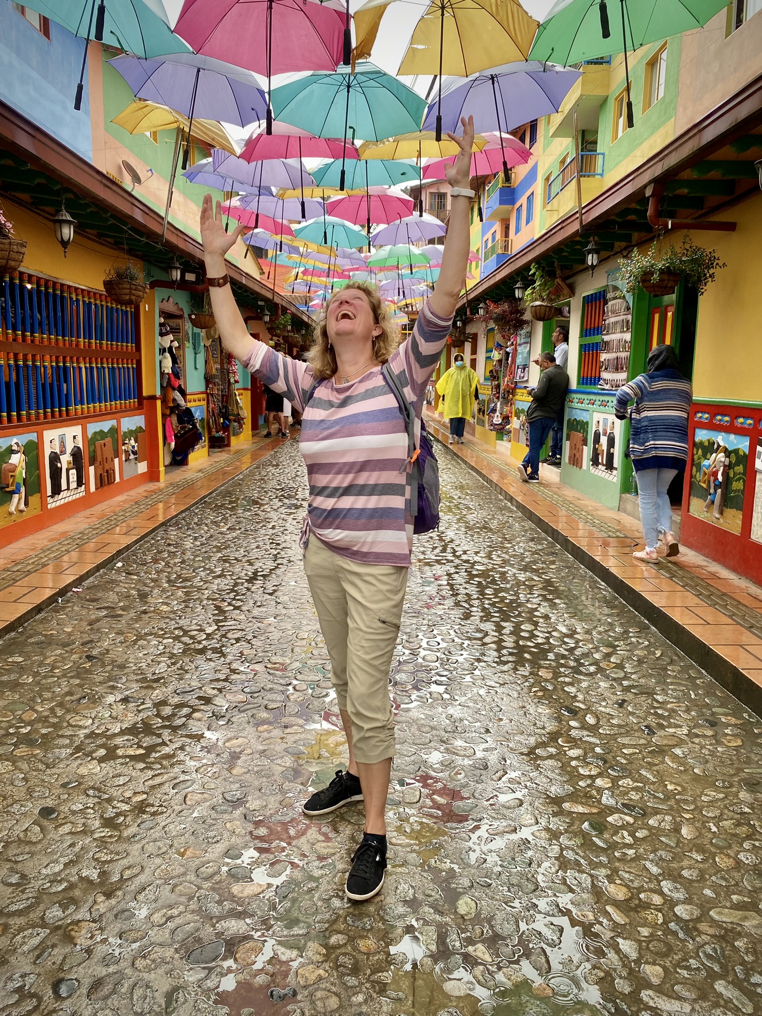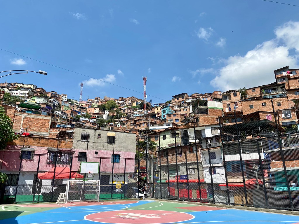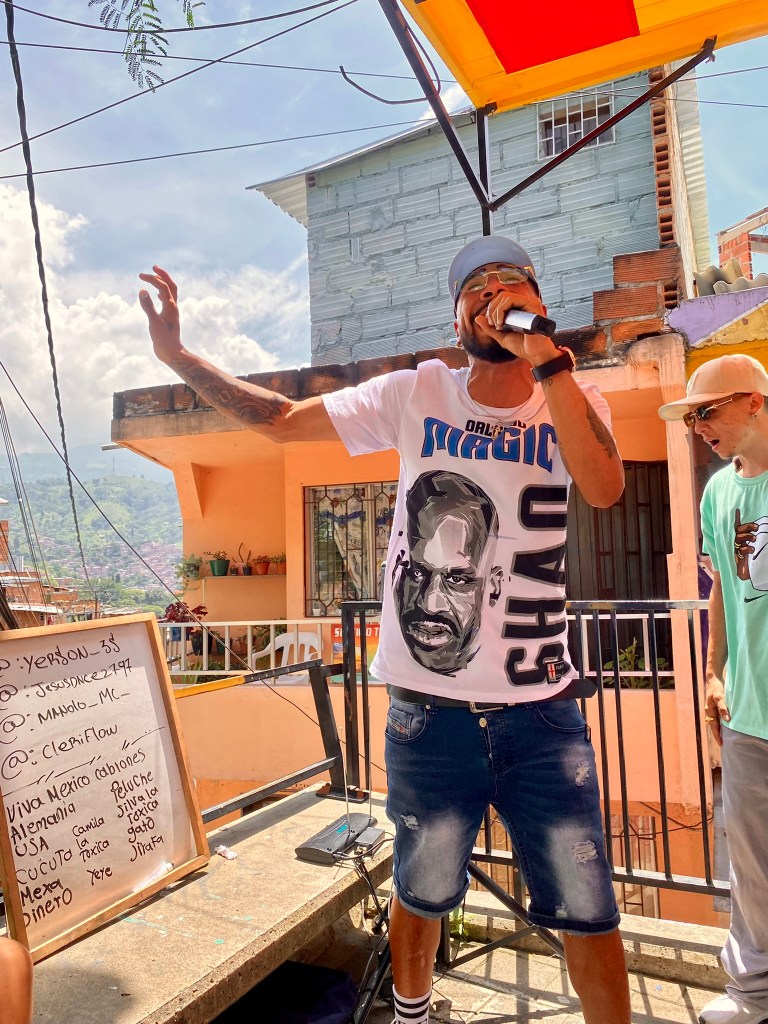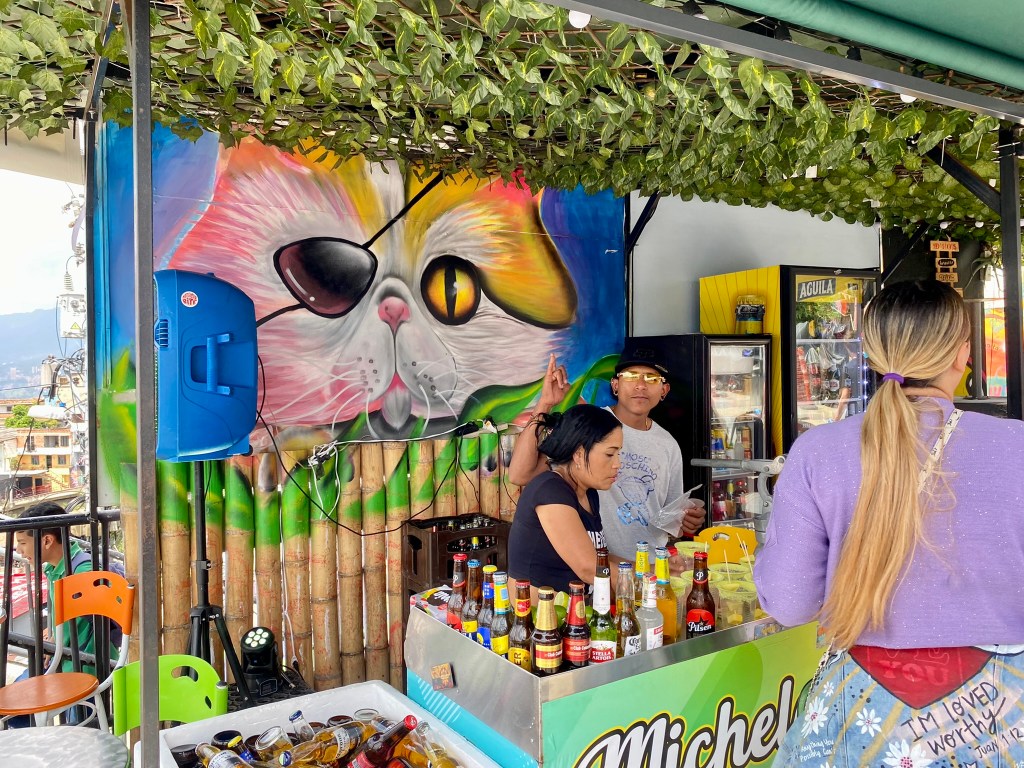 Day 2, I booked a small morning tour to Comuna 13, an amazing, resilient neighborhood that is reviving itself through art, education, and passion. My local tour guide was Alex, a 23-year-old guy, who is wise well beyond his years. He has an inspiring story, growing up during much unrest in the country, he lost his blood family when he was a baby due to them being unwilling to leave during the guerilla takeover. He was adopted and has been studying different languages and cultures since he was 10. He has taught himself English, Russian, and Japanese all from You Tube! Amazing! Aside from that, he is so passionate about Colombian history and the history of his neighborhood. The tour included me and two great German ladies. Alex took us up the stairs, winding through the community to see the unbelievable graffiti art, street rappers, and children’s play areas. I believe you will see the passion of the community from the pics! Enjoy!