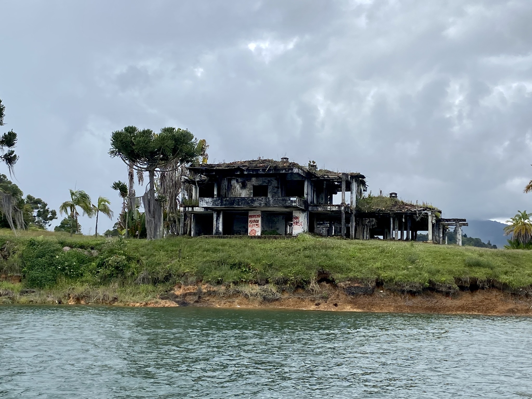 Day 3, I headed out of Medellin on a Spanish speaking tour to Guatapé. I’m not used to big tours, especially in Spanish, so this was a treat! I have to say, the energy was infectious even though I understood very few details. Both the guide and the others on the tour laughed and cheered as we wound through the countryside with upbeat music in the background. We stopped at a couple small towns and took a boat tour to see Pablo Escobar’s former property near Guatapé that has been taken by the Government. Not that I’m a big Pablo fan, but the abandoned property is super cool looking! The other farms and properties were so beautiful too!