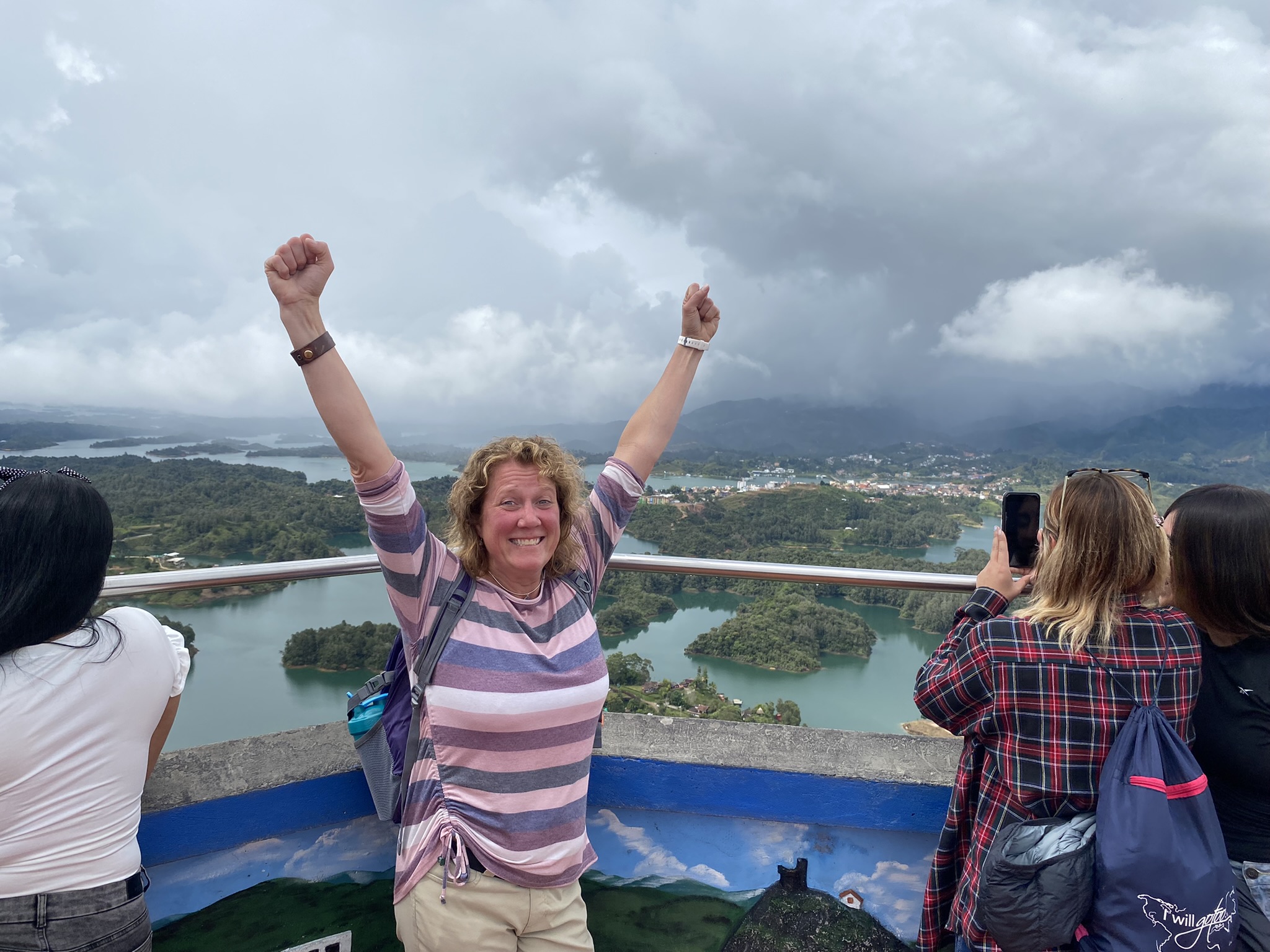 After the boat ride, we had a bit of lunch and then had the opportunity to climb the 708 stairs at El Peñól de Guatapé (The rock of Guatapé, which is approximately 65 million years old) to see the 360° views of Embalse El Peñol-Guatapé’, one of the largest lakes in Colombia, created by the construction of a dam which provides about 30% of the electricity to the country.
