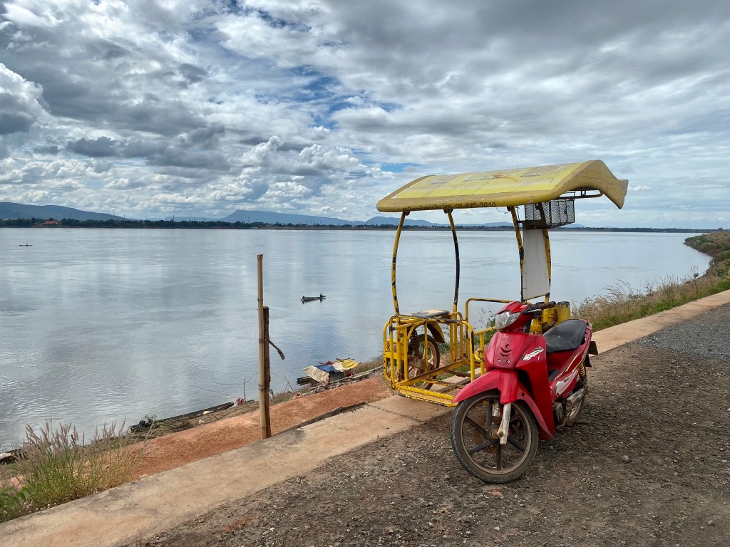 I arrived in Pakse and took a tuk-tuk to the guesthouse I had booked. It was a nice enough place and the man running it spoke fairly good English, making it easier to find out what was going on in the area. He was really sweet and even loaned me an umbrella to combat the sun while I took a long walk. I shortly stumbled upon a large market with the works, and a little reprieve from the heat. It’s always fun to see the locals buying goods for their upcoming meals, etc. After, I continued down the road to grab a snack, then to the bank of the Mekong where there were a couple of temples and giant Buddha across the river. During my walk, I met a super nice guy with a bike/sidecar who drove me to see another famous temple before taking me back to my hotel to get a bit of rest before the evening.