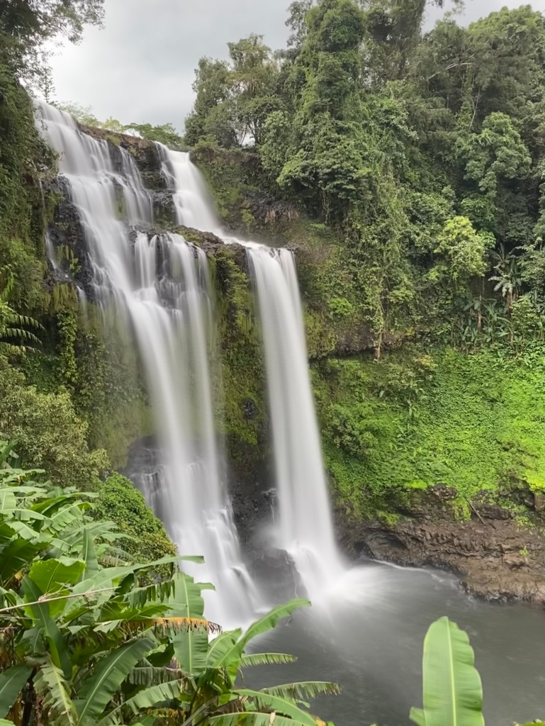 Next, we stopped at Tad Yuang Falls, an even more impressive sight! It is not as high as Tad Fane, but, in my opinion, more beautiful how it stretches across the rocks. This one also had a slippery path/stairs down to the bottom. I hiked down stopping at some for some views along the way. When I got within about 100’ of the bottom, it was so magical feeling the mist cover my body. I was the only one there in this peaceful spot!