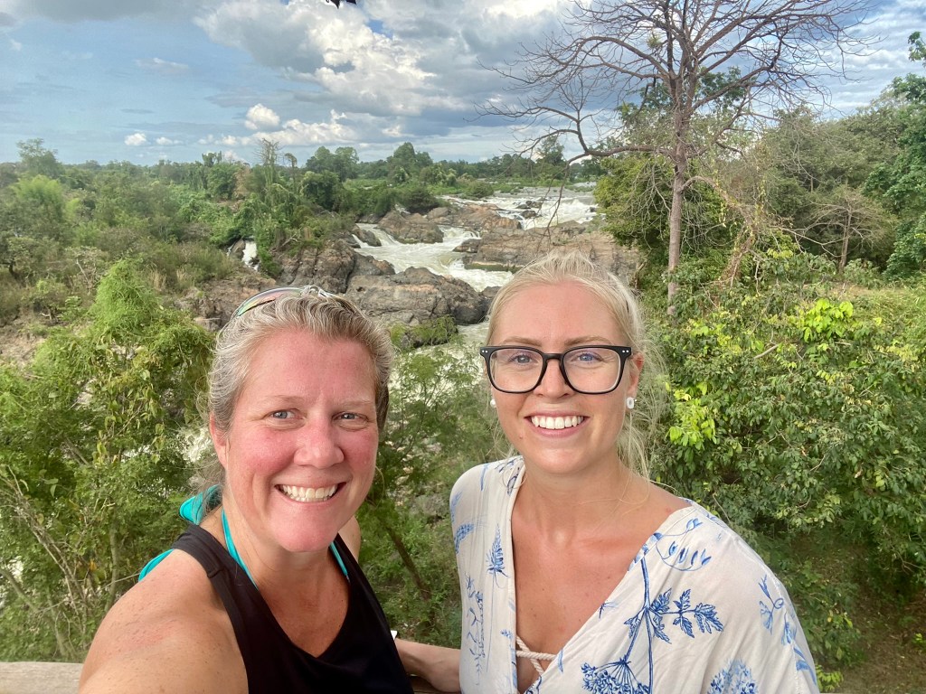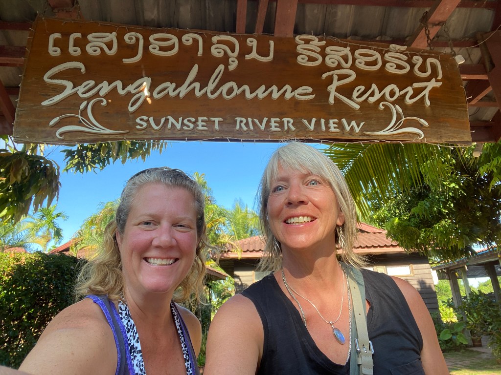 When we were ready to return to Don Khone, we found our tuk-tuk driver and got on the road. He dropped us at the boat dock, and here we waited, not really knowing how to find the right boat to take us back. We settled for a seat on the dock, trying to ask a few of the locals, showing them our ticket, but not really getting an answer. Suddenly, one of the guys on the dock who had made a call to the number on our ticket, untied the “dock”, started the engine, and said he was taking us to Don Det. Hahaha, we weren’t on the dock, we were sitting on his boat. It was a delightful ride as we sat in the front of this double boat/deck contraption and guided across the river. Once we arrived on Don Det, a few minutes later, another boat arrived to take us back to Don Khone. It’s funny, things always seem to work out here if you are just patient and trust. We still have no idea exactly what happened, but we had a beautiful journey and arrived back safely with smiles on our faces! With that, we gave each other a big hug and parted ways, as Johanna was leaving the next morning.
