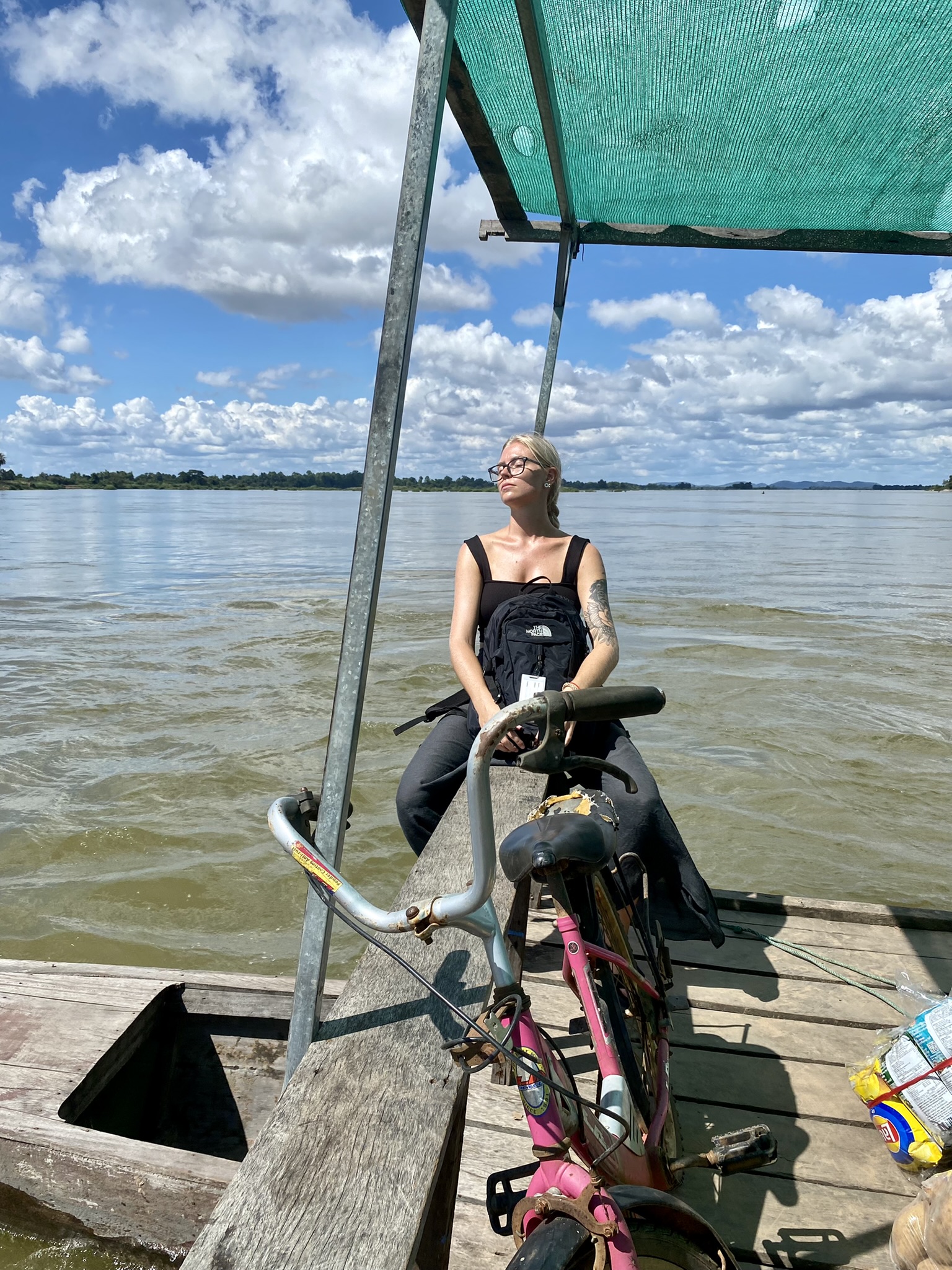 On the bus between Pakse and Ban Nakasang, the village on the mainland where you catch the boats to the islands, I met a sweet girl, Johanna, who was also on a solo journey from Sweden. We took the boat to Don Khone together, chatting along the way and getting to know each other. When we arrived, we made a plan to get checked in, grab a bite, rent bikes, and meetup to ride to the Sompahmit waterfall, just a few minutes down the road.