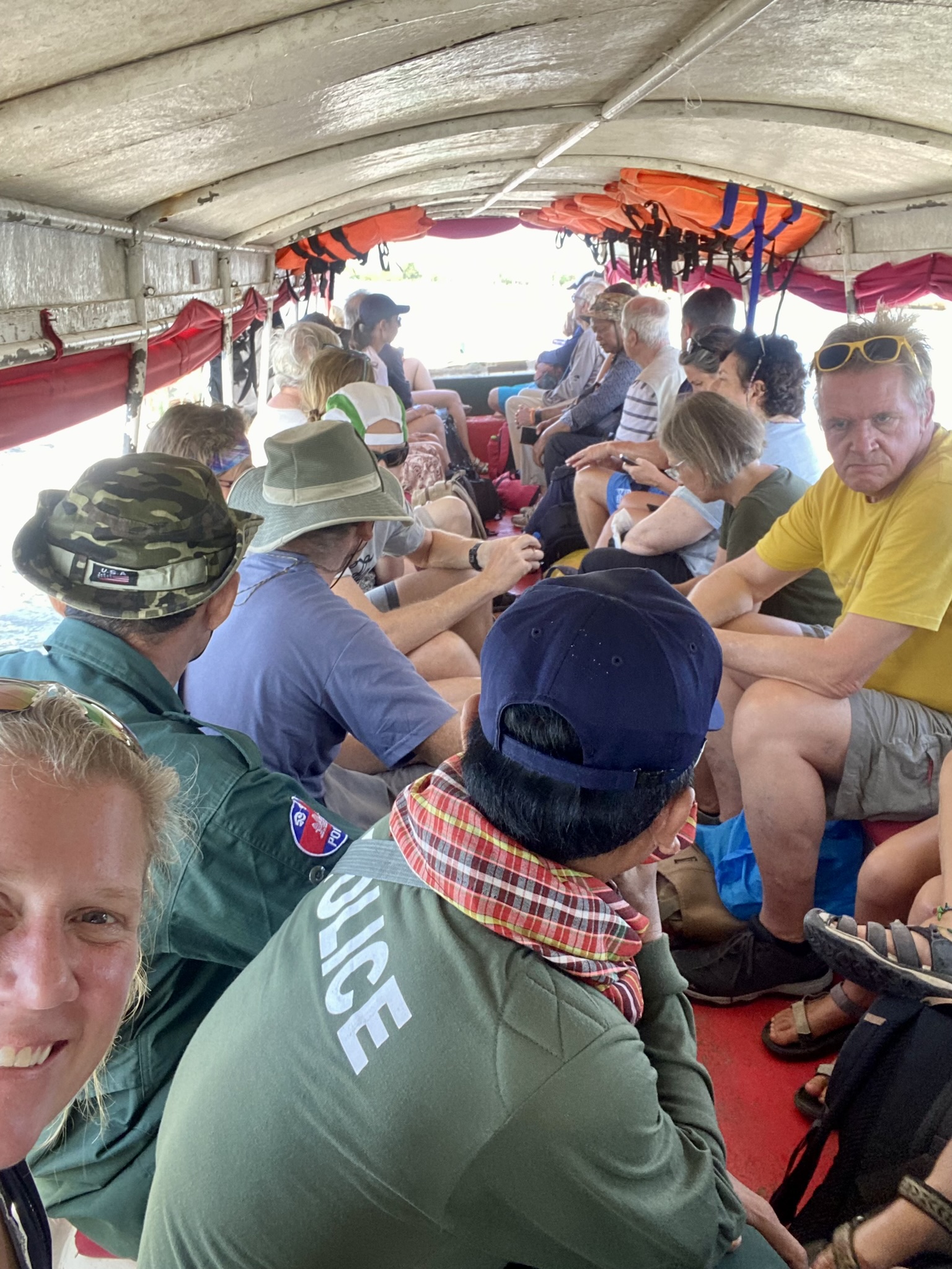 As the day wore on and the hours ticked by, it became so hot on the boat that many of us climbed out and stood on the outside ledge to get some air and take in the views. It was beautiful outside of the boat. Finally, 7 hours later, we arrived!