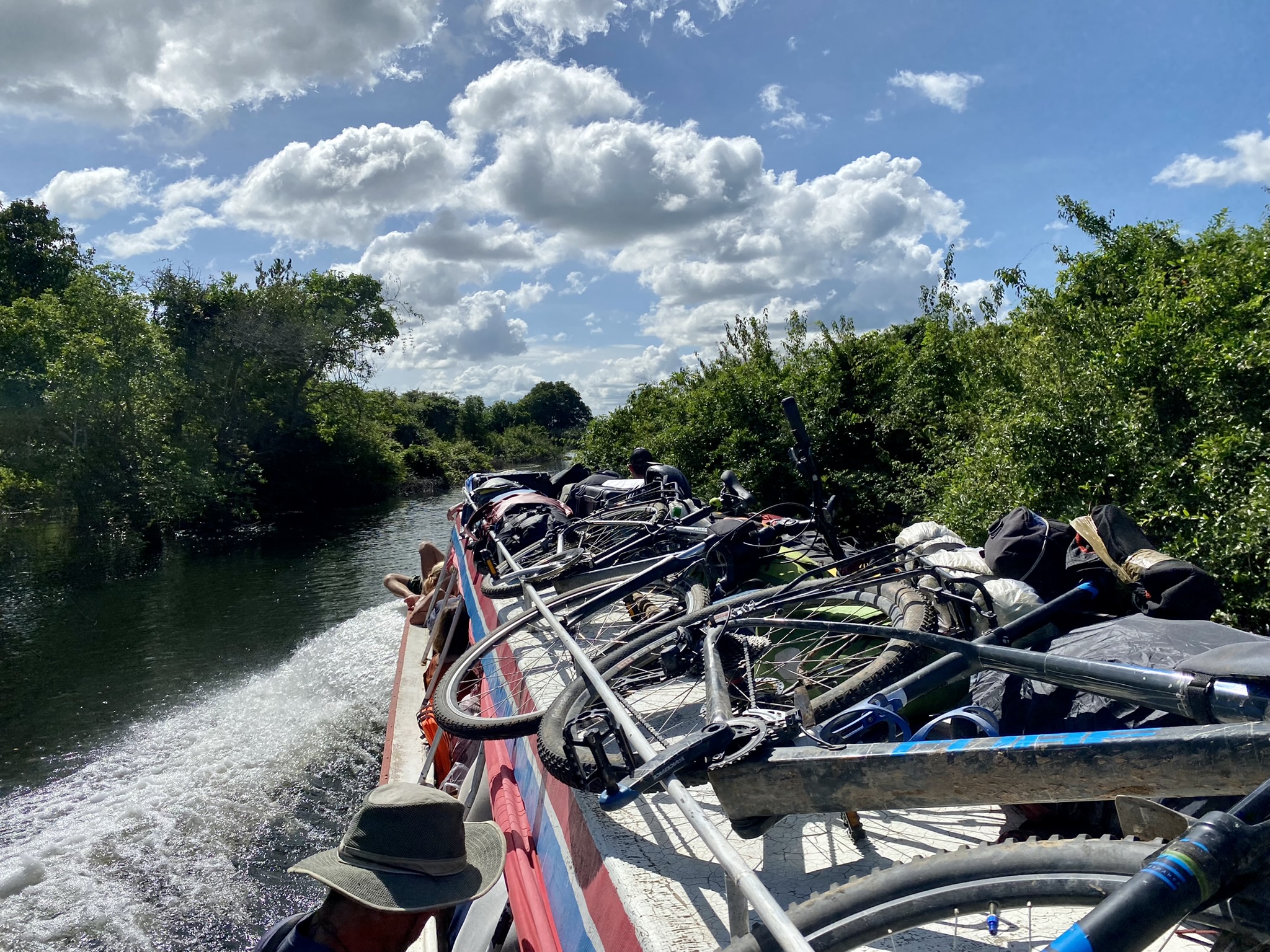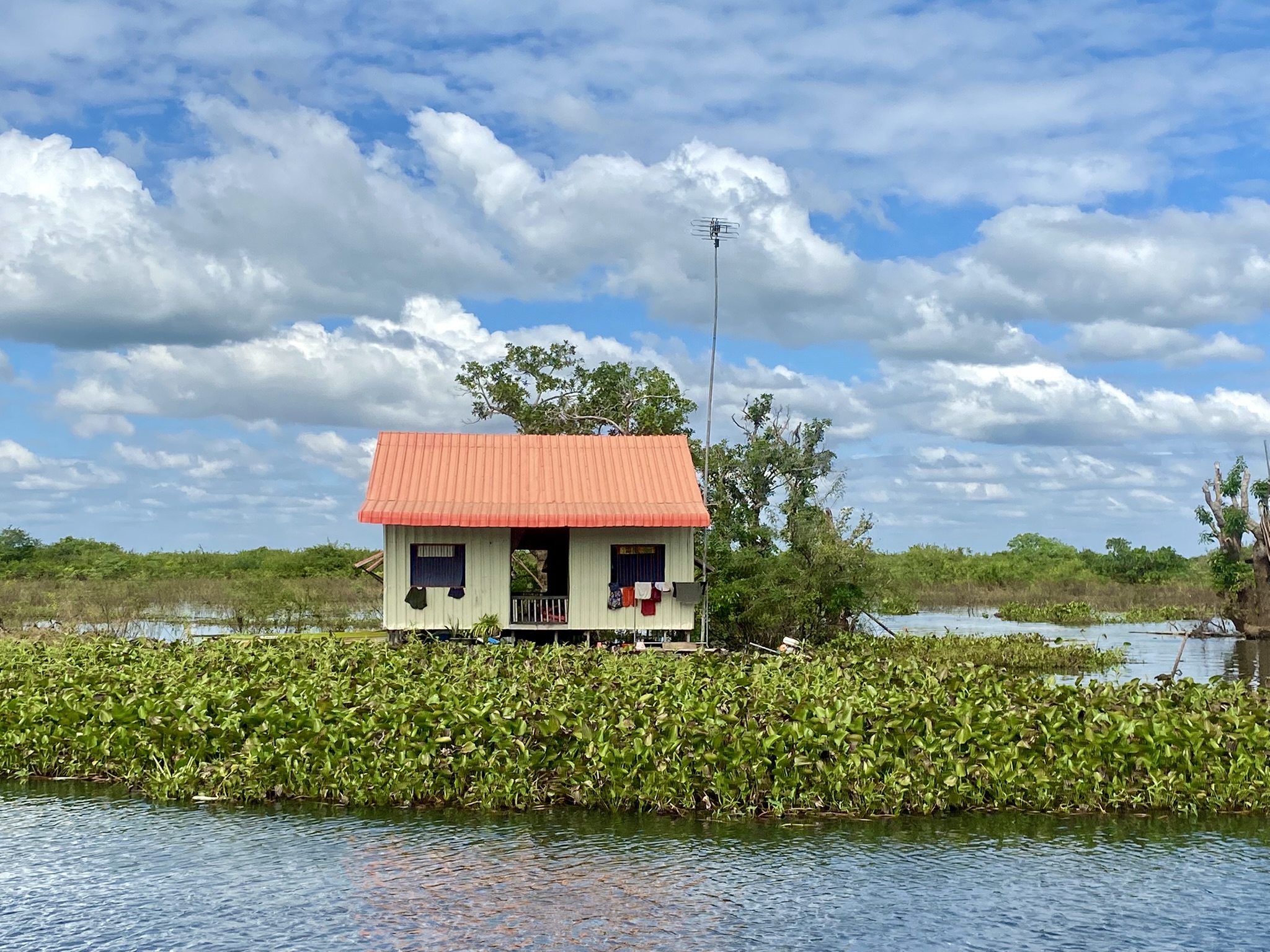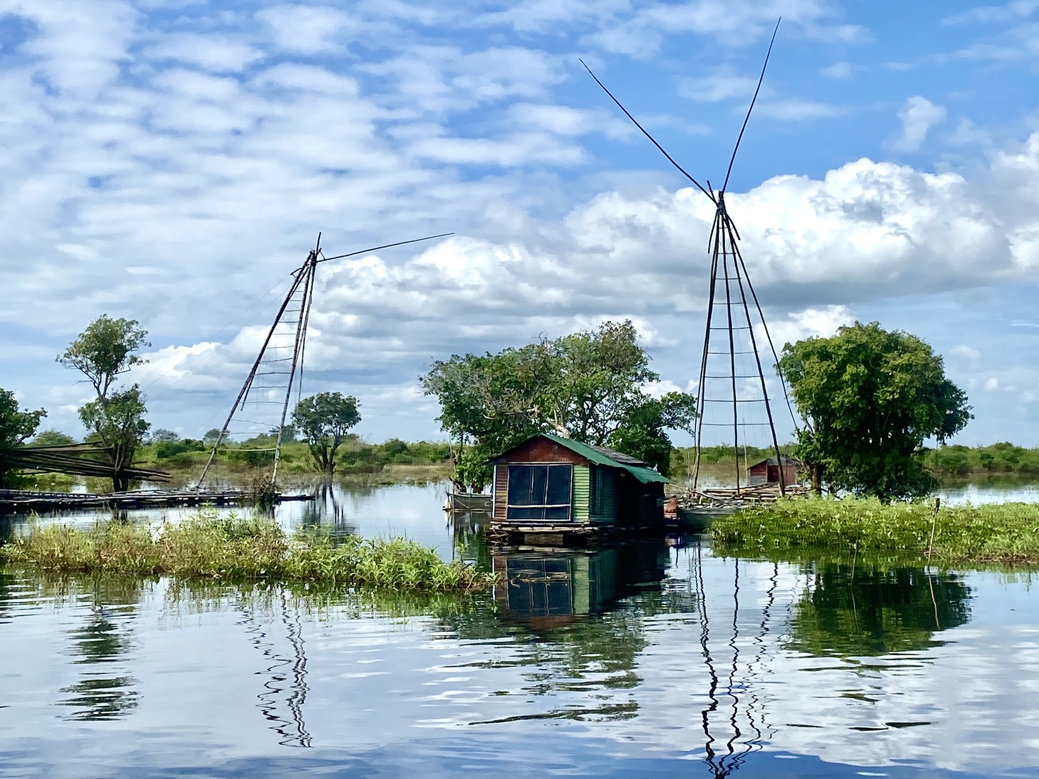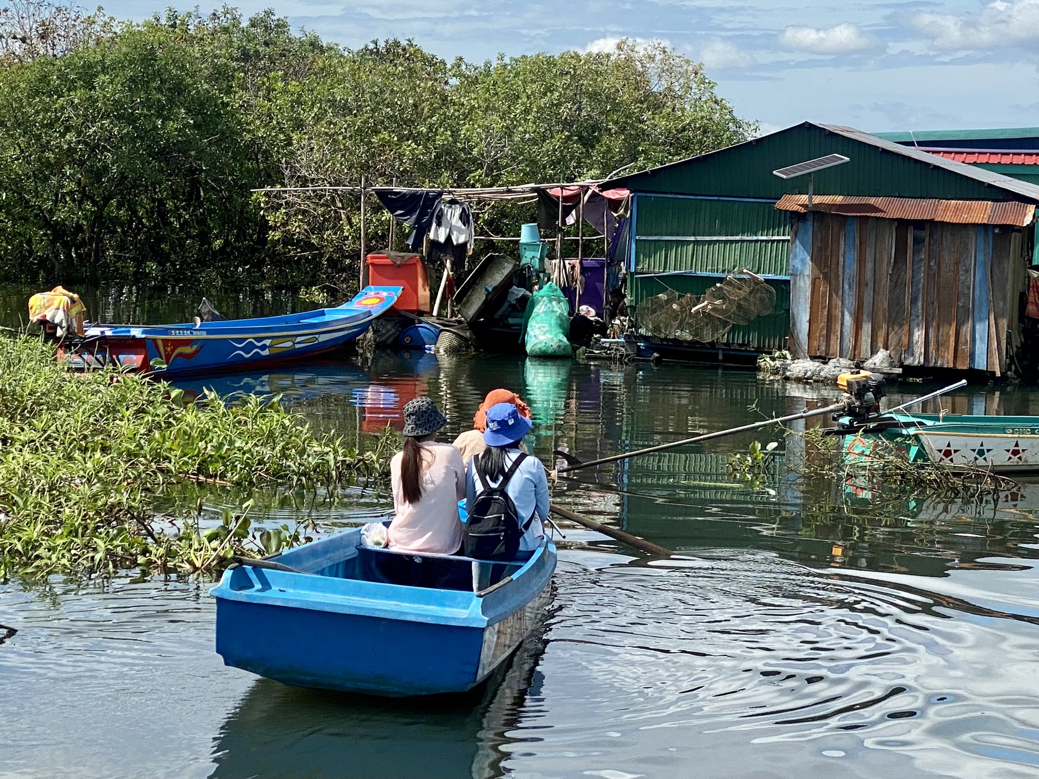 After some time in Siem Reap, I was ready for a mini vacation and decided to take a short trip to visit Battambang. There are three options to get there, minivan, boat, or taxi. The trip by road is about 50 miles/80 km, but with the roads, it takes about 3 hours. The boat is the most expensive option, and also the longest at 4 hours. Of course, I love to be on the water and see all of the little villages, so I chose the boat. Unfortunately, I picked a day where they didn’t run the normal tourist boat with rows of seats, but instead a smaller, not so nice boat with seats around the edges so we could all stare at each other instead of the beautiful scenery. I ended up at the very back of the boat, in front of the toilet (which was awesome if you were less than 3′ tall), engine, and captain. Luckily I had my earplugs handy in my backpack as they gave me some protection from the crazy loud engine. Once we were sufficiently packed in and all the luggage and a few bikes secured on top, we started moving….slowly! And, as it goes, we soon made a couple more stops to pick up some local passengers as well as a live crocodile covered in rice bags (WTF?), that was placed on the floor in front of the toilet and directly behind me. Okay, here we go…hot, sweaty, so much leg room, and sucking in fumes, what a treat!