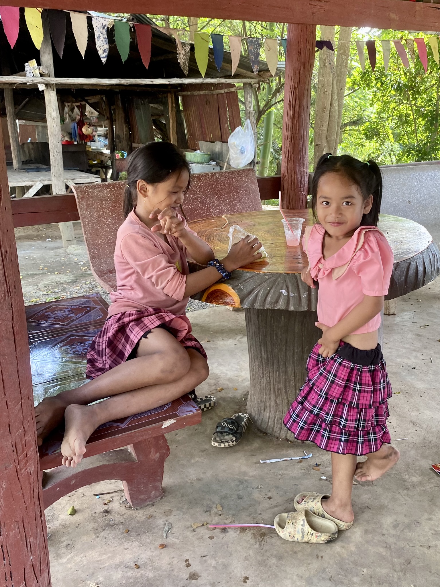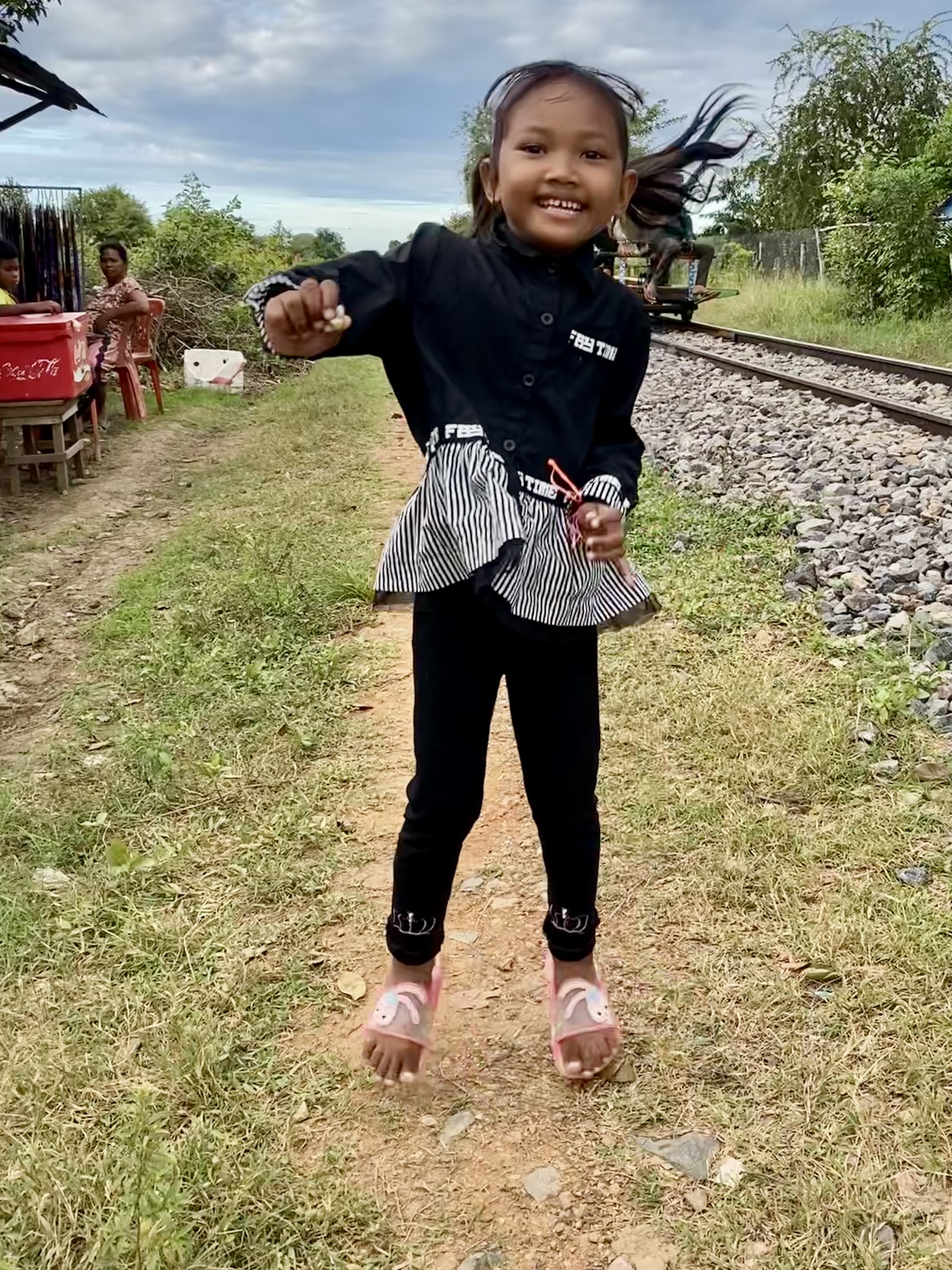 At the final station there is a little market where the locals sell clothing and drinks to the tourists. Right now, there are only 12-15 tourists a day and about 8 shops, so they stop each train at a different shop so each of them has a chance to sell something. The lady at the shop where I landed was so sweet and we had an instant connection. I ended up having to wait for the big train to come through before we could return, so we had some time to chat. She told me of her life riding the bamboo train to school as a child, which she only attended until 4th grade. She was the oldest of 8 kids, and her dad was an alcoholic and beat her mom severely. In 4th grade, he passed away, leaving her to take care of her mom and younger brothers and sisters. She worked so hard to support her family. Now, she has 5 kids of her own who she wants to offer a better life. She works hard every day setting up her shop and trying to pay for their school and necessities. Her oldest is working hard too and hoping to attend some college soon! It was so humbling to speak with her and also to play with one of her shop neighbors girls by the tracks. The kids are learning English and are so eager to talk with tourists! This was a really special place to be.