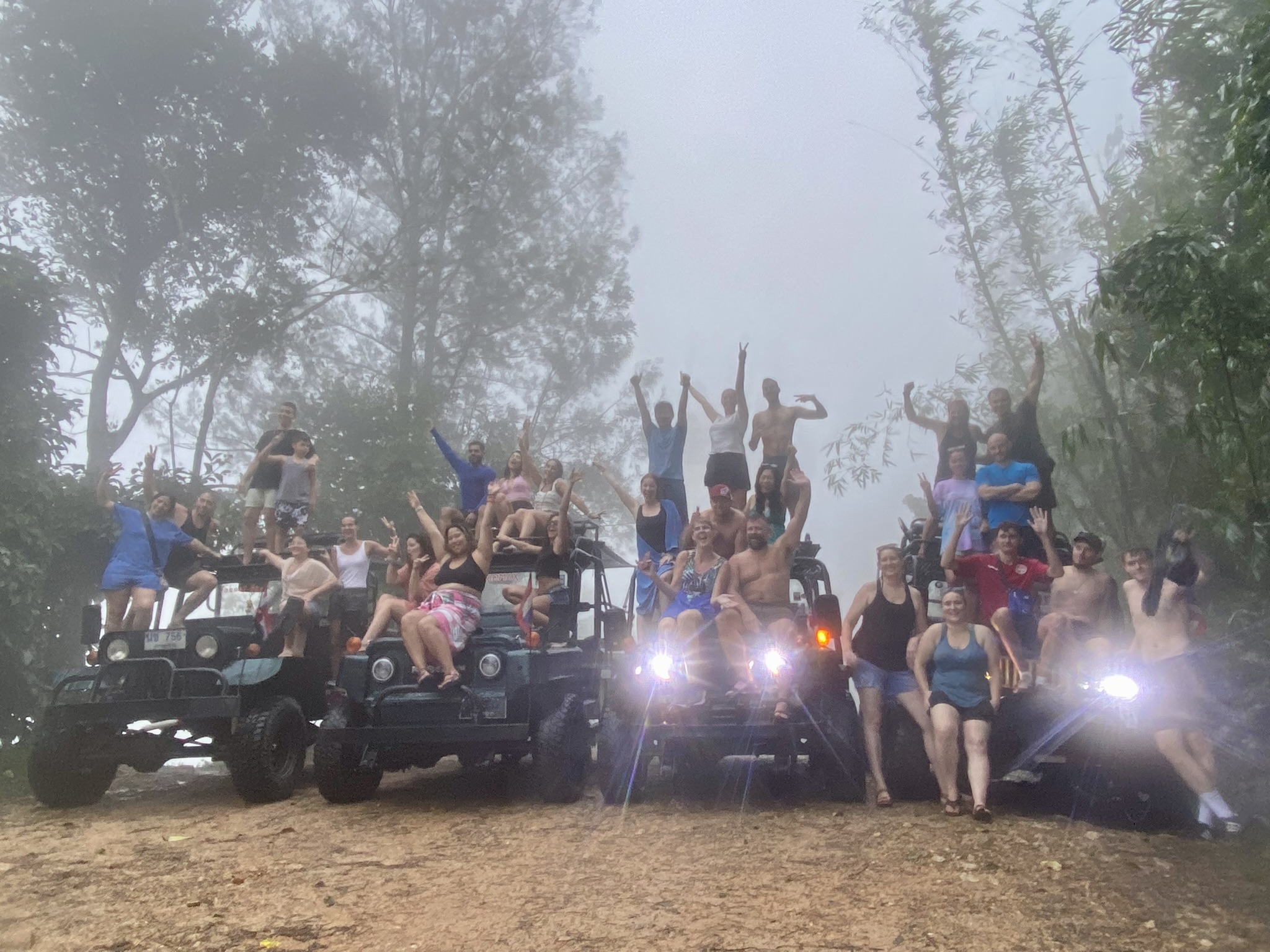 We visited the Mummified Monk, Tamin Magic Garden, the Big Buddha, The Happy Monk, and the Impressive Wat Plai Laem where much of its structures sit over the water. Towards the end of the day, we even had a water fight in the jungle right as the torrential downpour started!