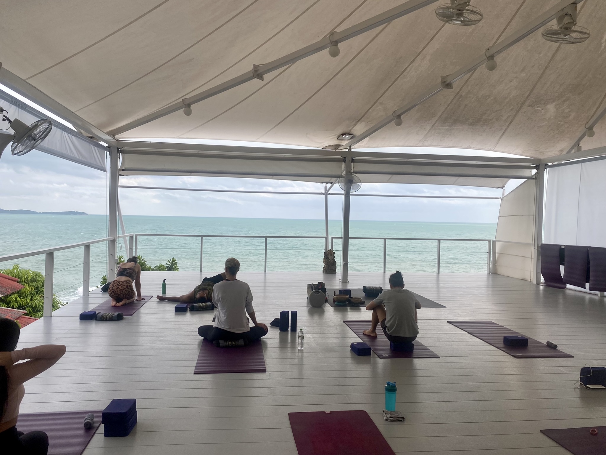 And the downpour then turned into a huge storm in the Gulf of Thailand and my boat, and all of the boats, were canceled for two days, so Koh Phangan had to wait. But, as things always do, it worked out. The place I was staying was great, they had a nicer bungalow they moved me two for the same price, and I got to hang out with my new friend Noni, who was staying there with her friend Larry and dog Bella. We went walking by the lake, shopping, and to a great yoga class on the bay!