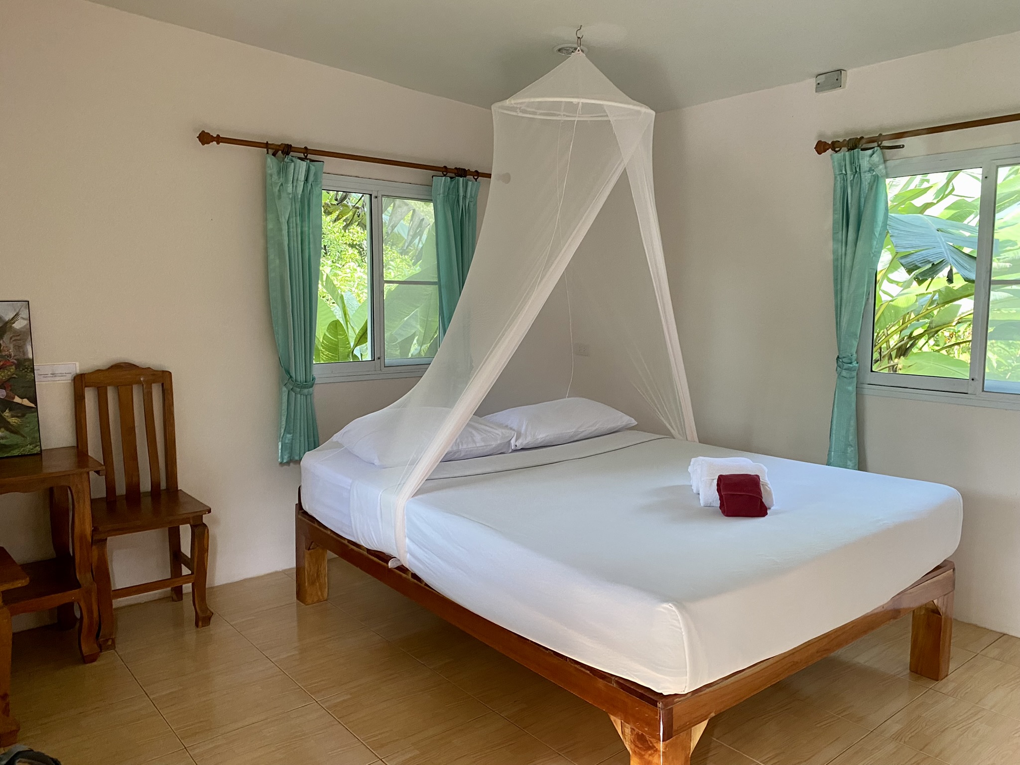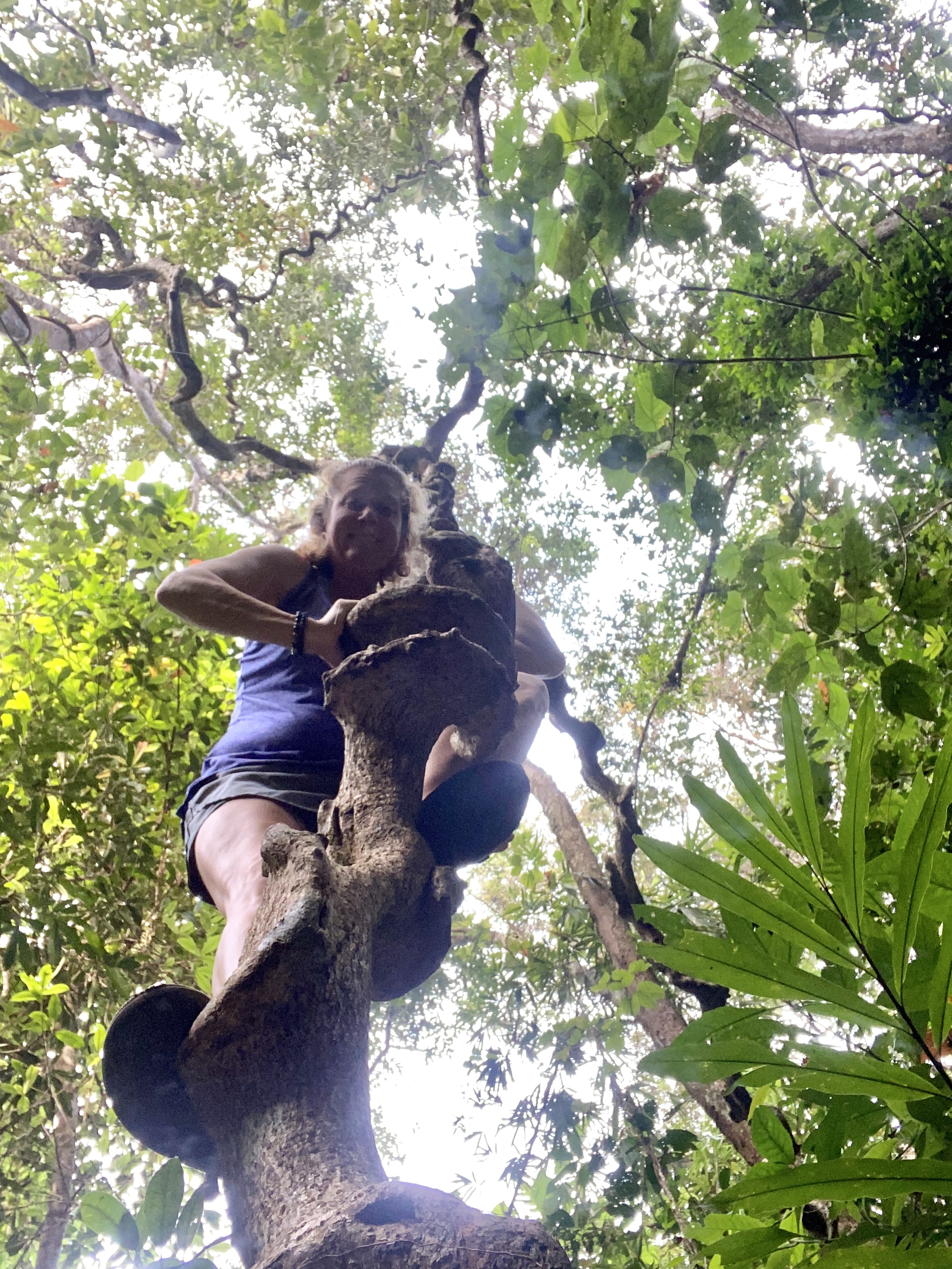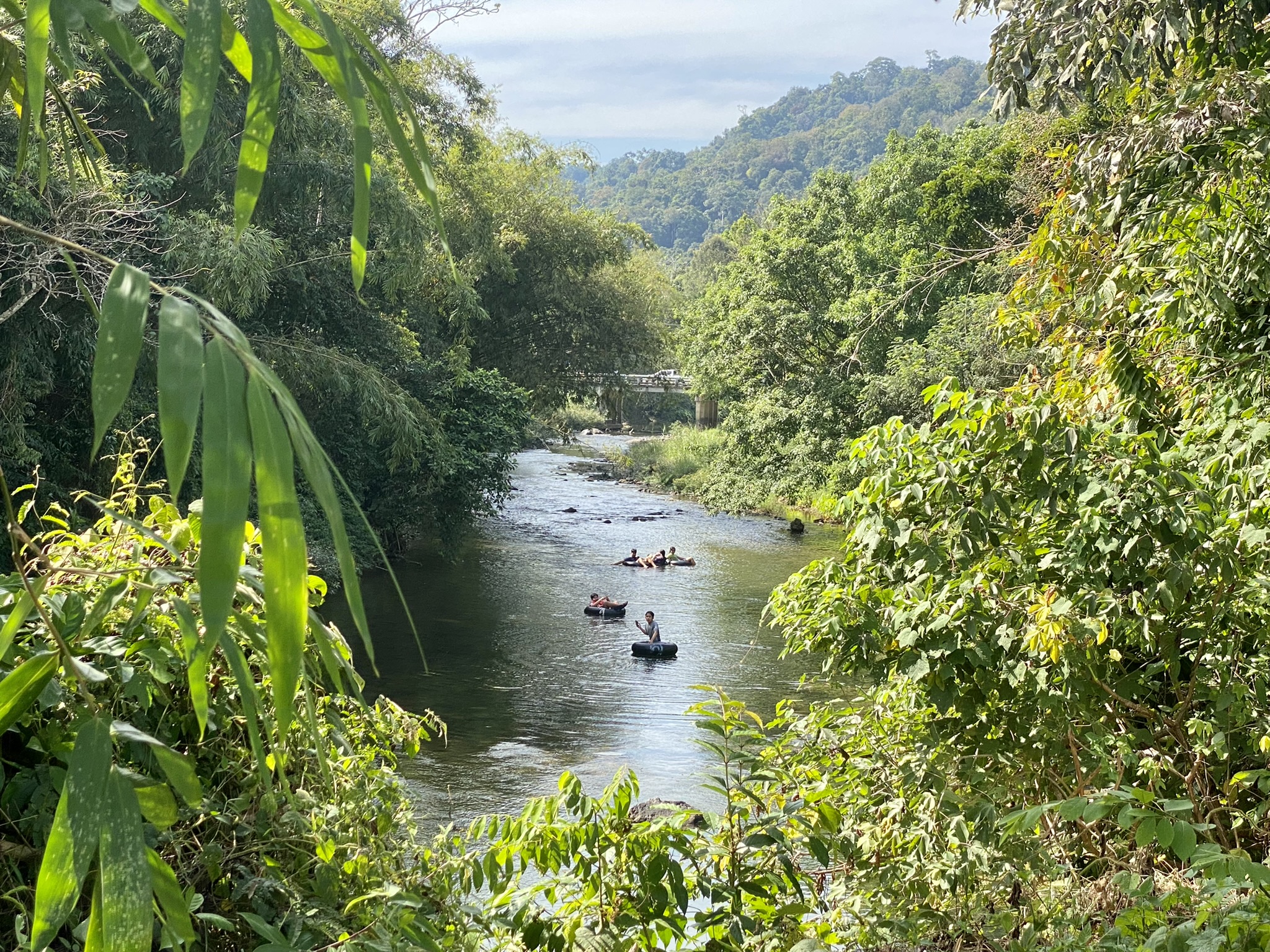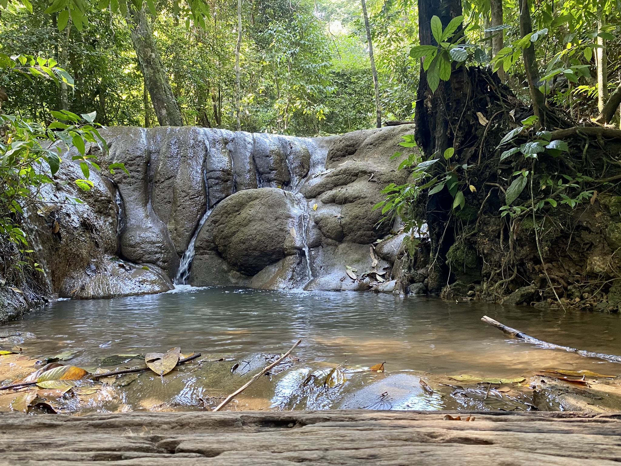 The first day, I took a 10 minute walk from my bungalow to the park entrance, so I could explore a bit on my own. I arrived about 7 AM, and was the second person to enter the park. I walked up the main trail which had several sights to see along the way, including pools and waterfalls. After a few minutes, I noticed there were several small trails off the side leading into the jungle. I could hear the running water and couldn’t resist. I chose a trail that looked inviting and walked in to the thick greenery. I explored for hours, never seeing anyone else. I relaxed on some rocks listening to the river and climbed a couple of vines, going back to my monkey roots! Growing hungry, wishing I would have remembered to pack some snacks, suddenly I came upon the ranger station at the top of the hill. I talked to a ranger, and bought a couple of bananas and a cup of instant noodles. As I waited for the noodles to soften, he explained I needed to hire a guide in advance to see the furthest waterfall, but could go a bit further on my own if I signed in. Soon I continued, loving every minute of the journey. The jungle is awesome! It is so beautiful and full of life! It wasn’t until I started heading out around noon that I saw another person coming in, but for those few early hours, the jungle had been my own personal playground!