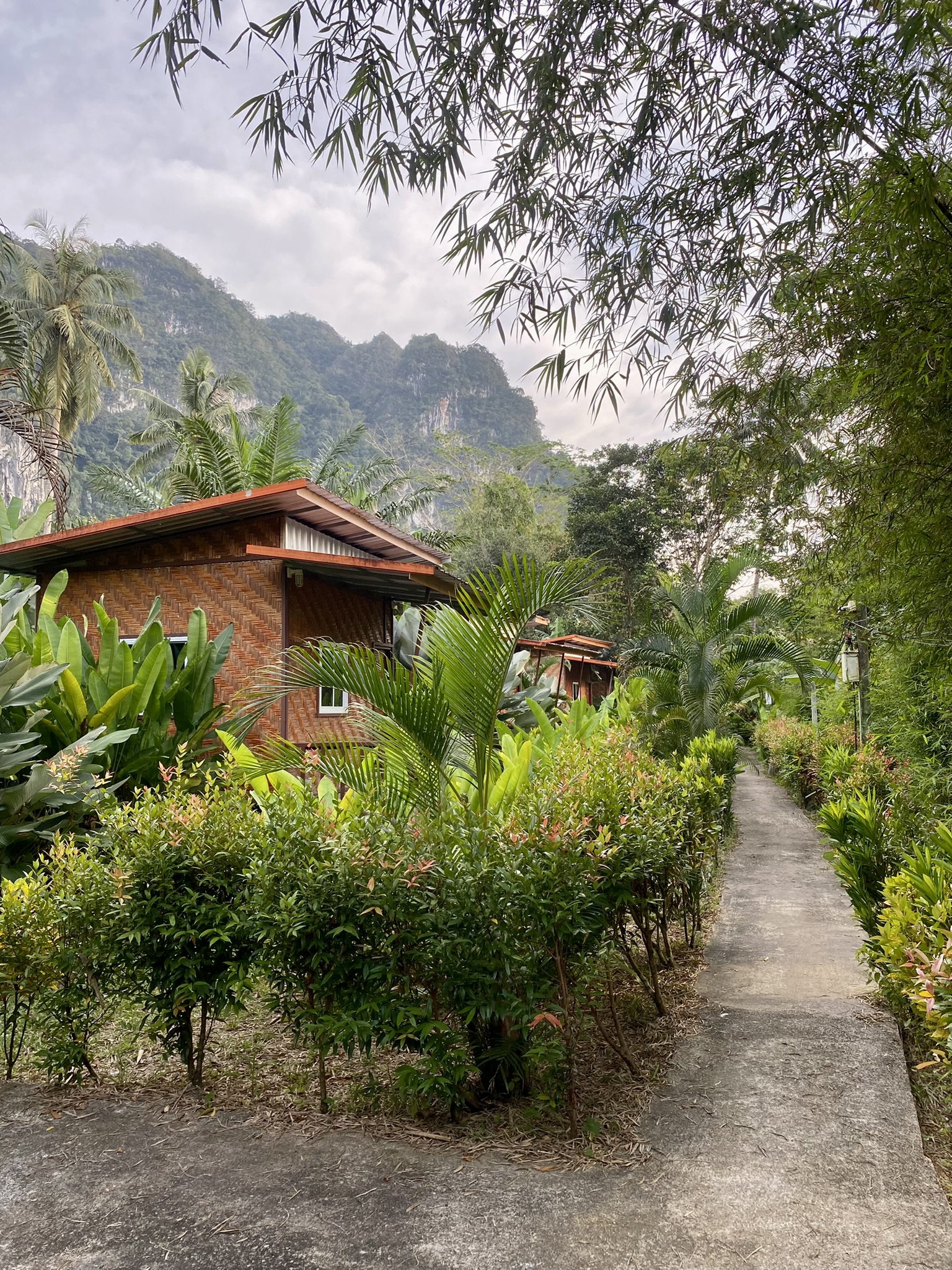 From Krabi Town, I traveled to Khoa Sok National Park. I wanted a place to relax in nature and chill for the new year without any big parties or craziness. A couple of people had recommended Khoa Sok, and after looking at it online, I couldn’t resist! Here are a few photos entering the town, my cute little bungalow in the Jungle (for $16/night!), the local bar on the walk in, and my favorite green curry made with love from Pawn’s restaurant in town.