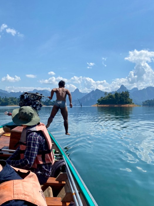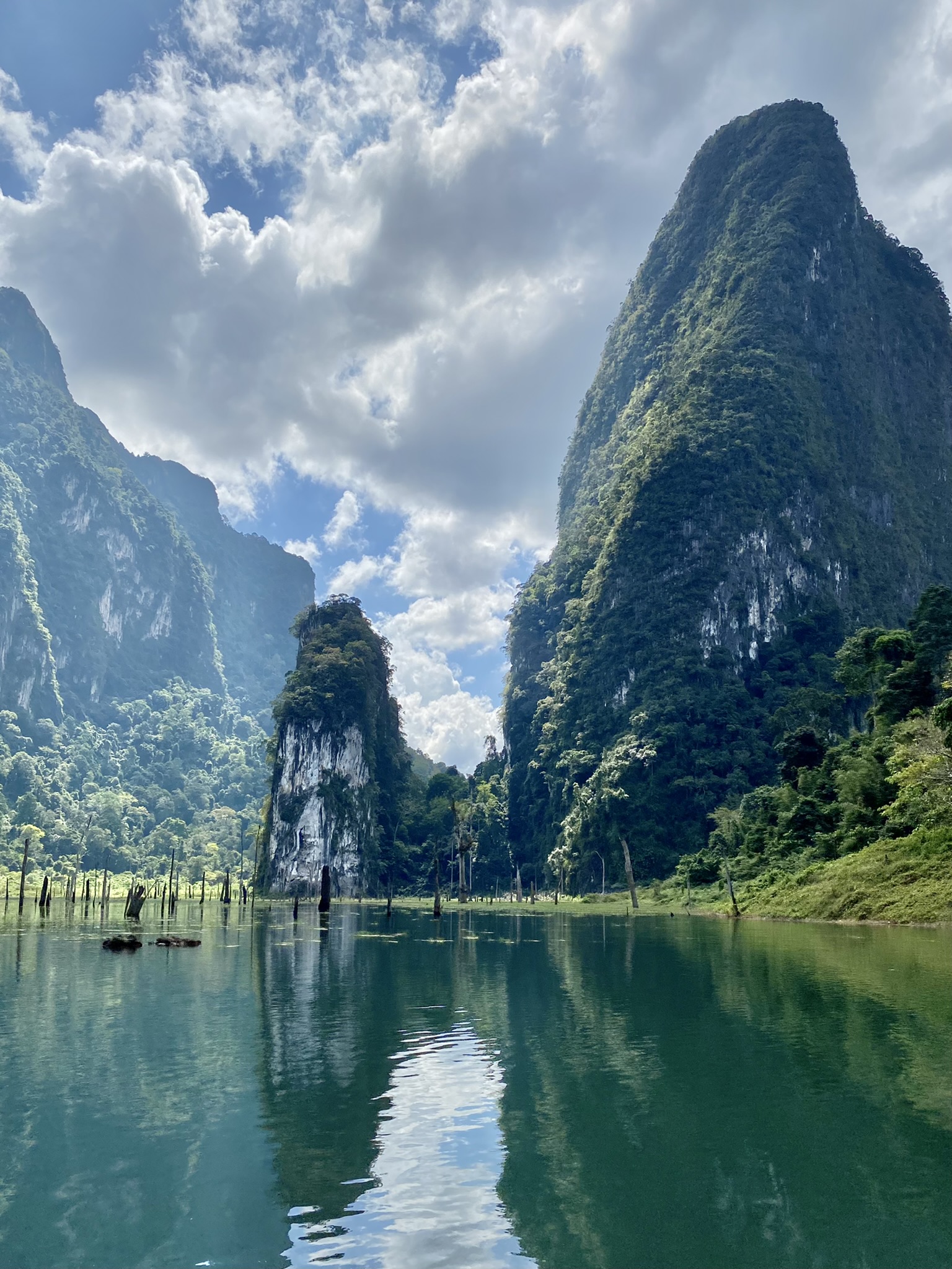 For New Year’s Eve, I wanted to do something special and memorable and decided a trip to Cheow Larn Lake in the park was it. I scheduled a full day tour which included a boat trip through the lake, a stop at a lake house for lunch, a cave, and a jungle trek.