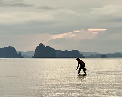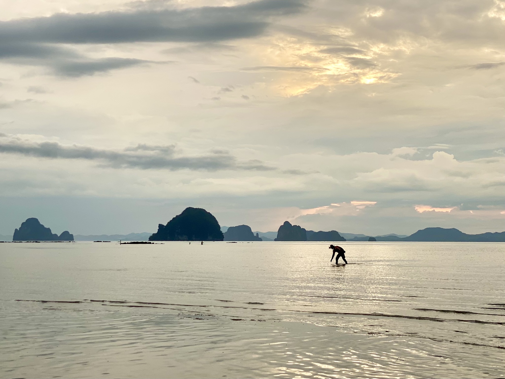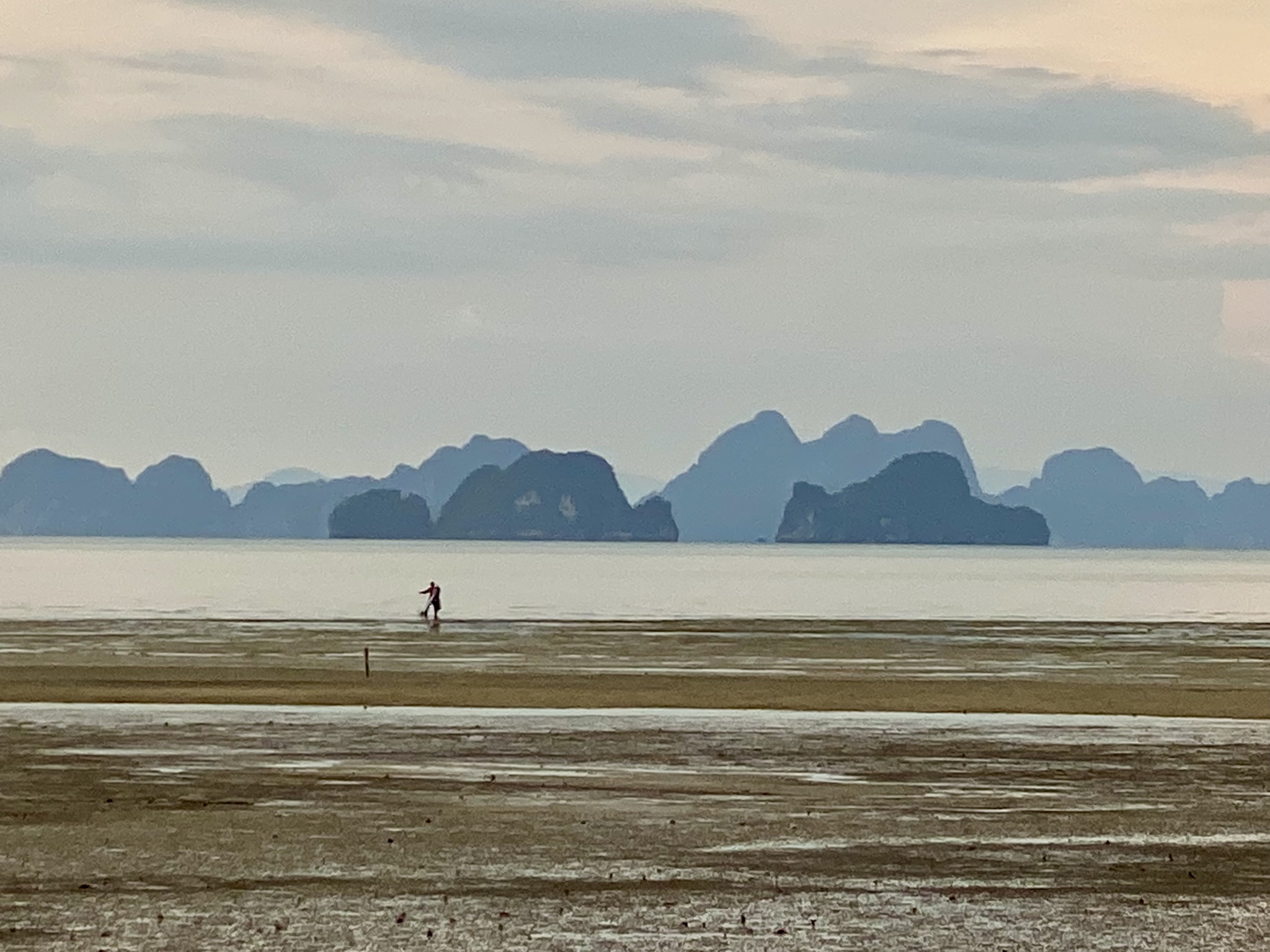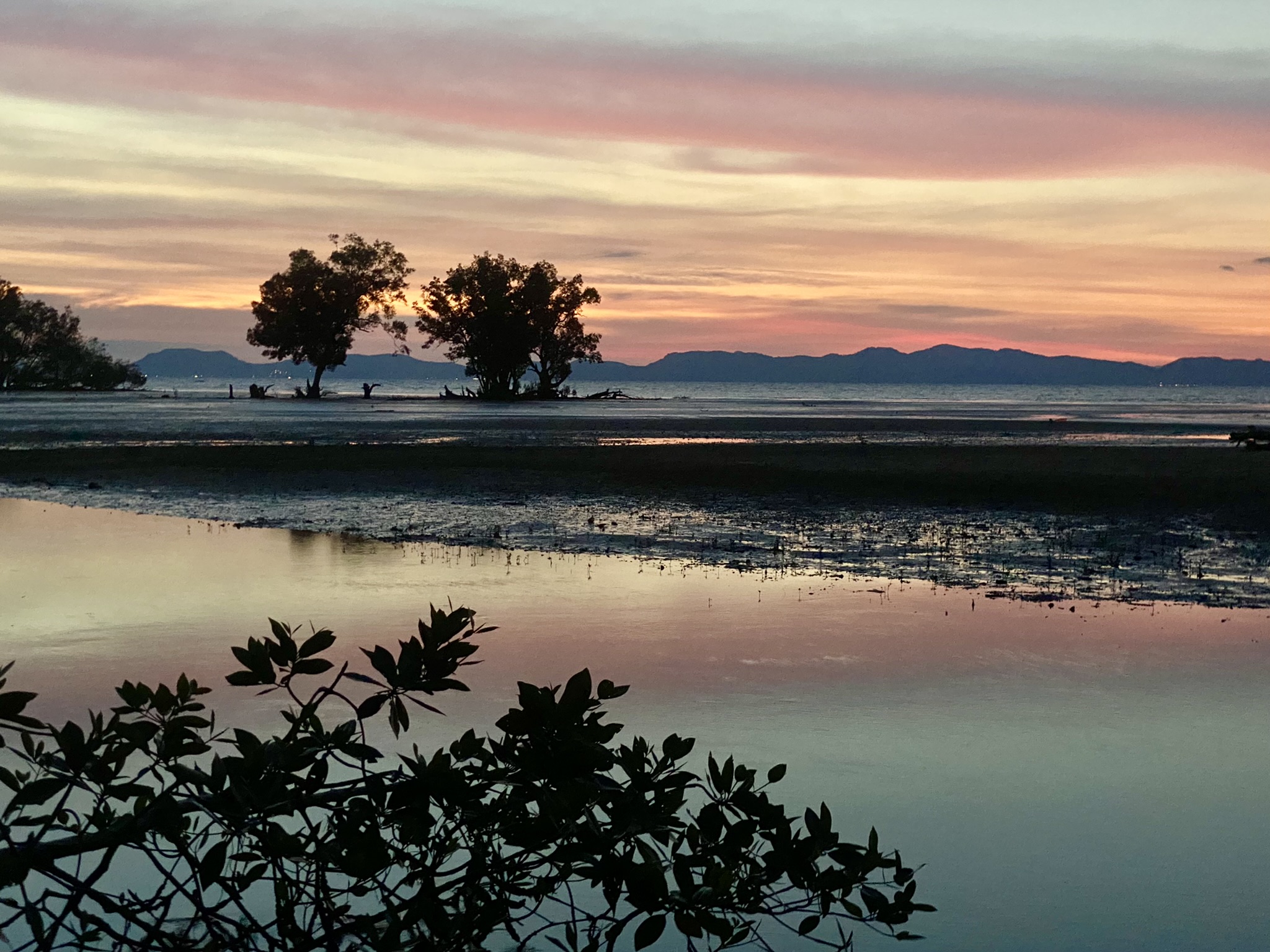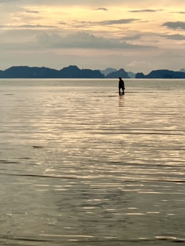 One evening, during low tide, I found myself at a little restaurant down the road with a bamboo bridge and swing and decided I should walk the sea floor back to the pier at Bananas. I started with my sandals, but quickly found the quick mud and almost didn’t get them back. So, barefoot, I continued out to see the fishermen and watch the sunset. It was gorgeous and I arrived back just in time to have a swing!