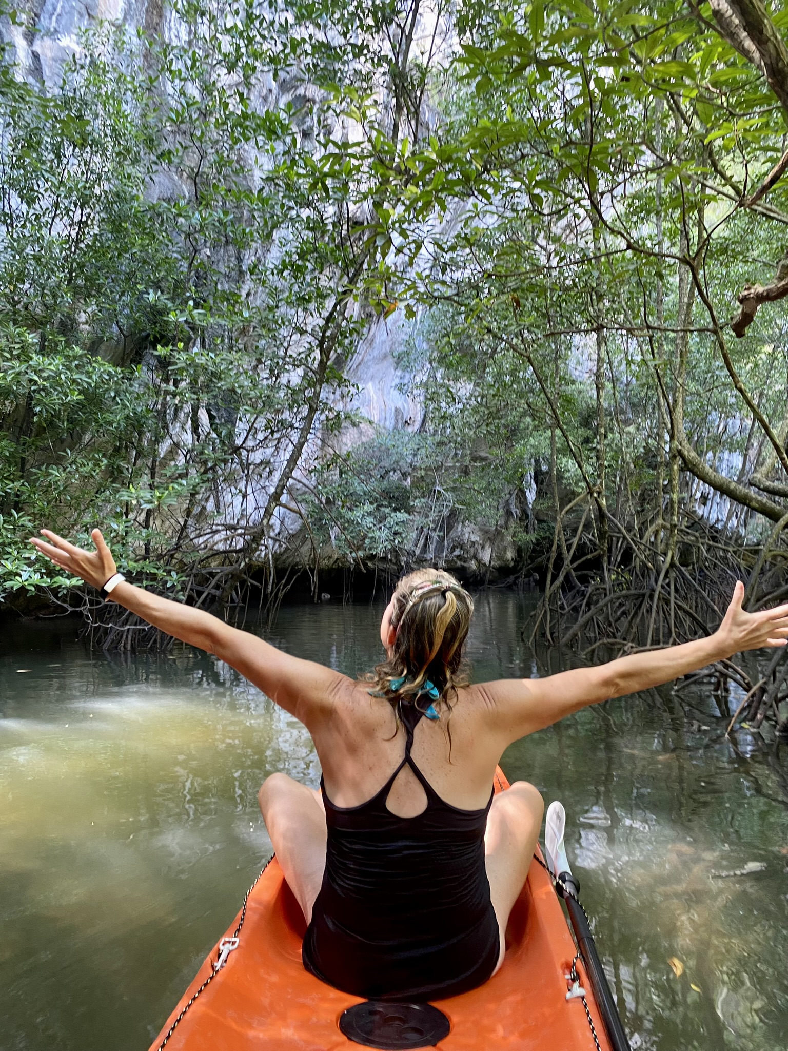 One day I accompanied Jenni, a past volunteer who was visiting from Germany with her Mom, on a kayaking tour through the mangroves. We swam at a little private beach and had so many laughs with our young guide who was very proud of MJ being legal now in Thailand!