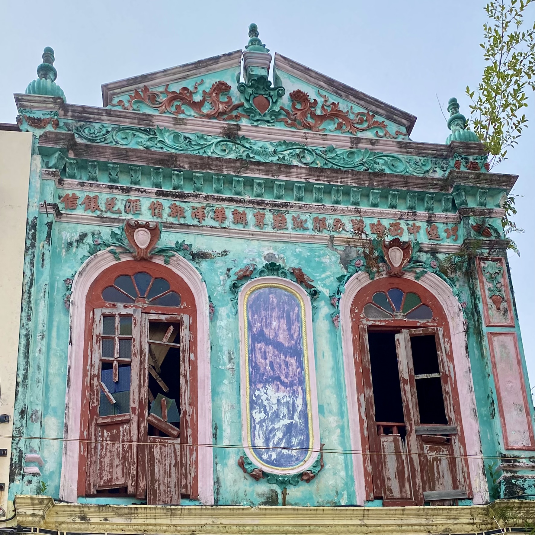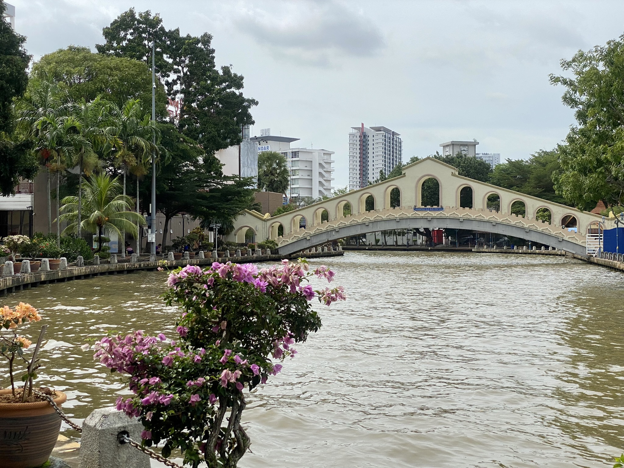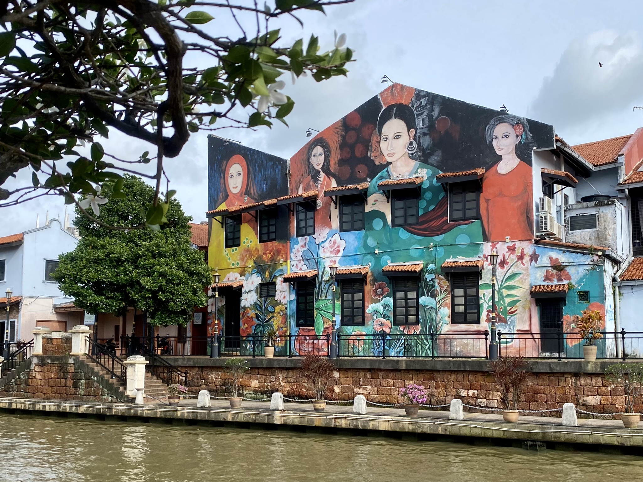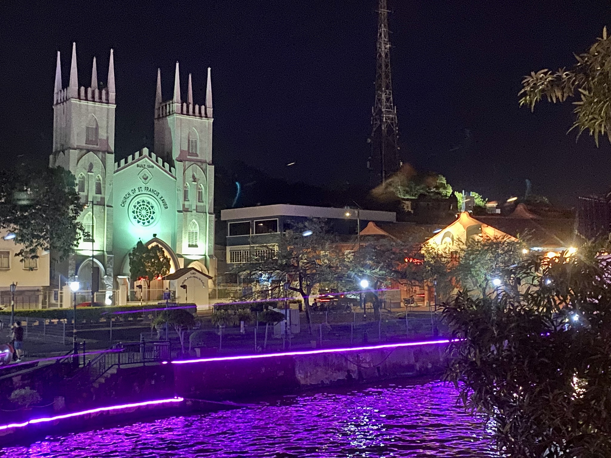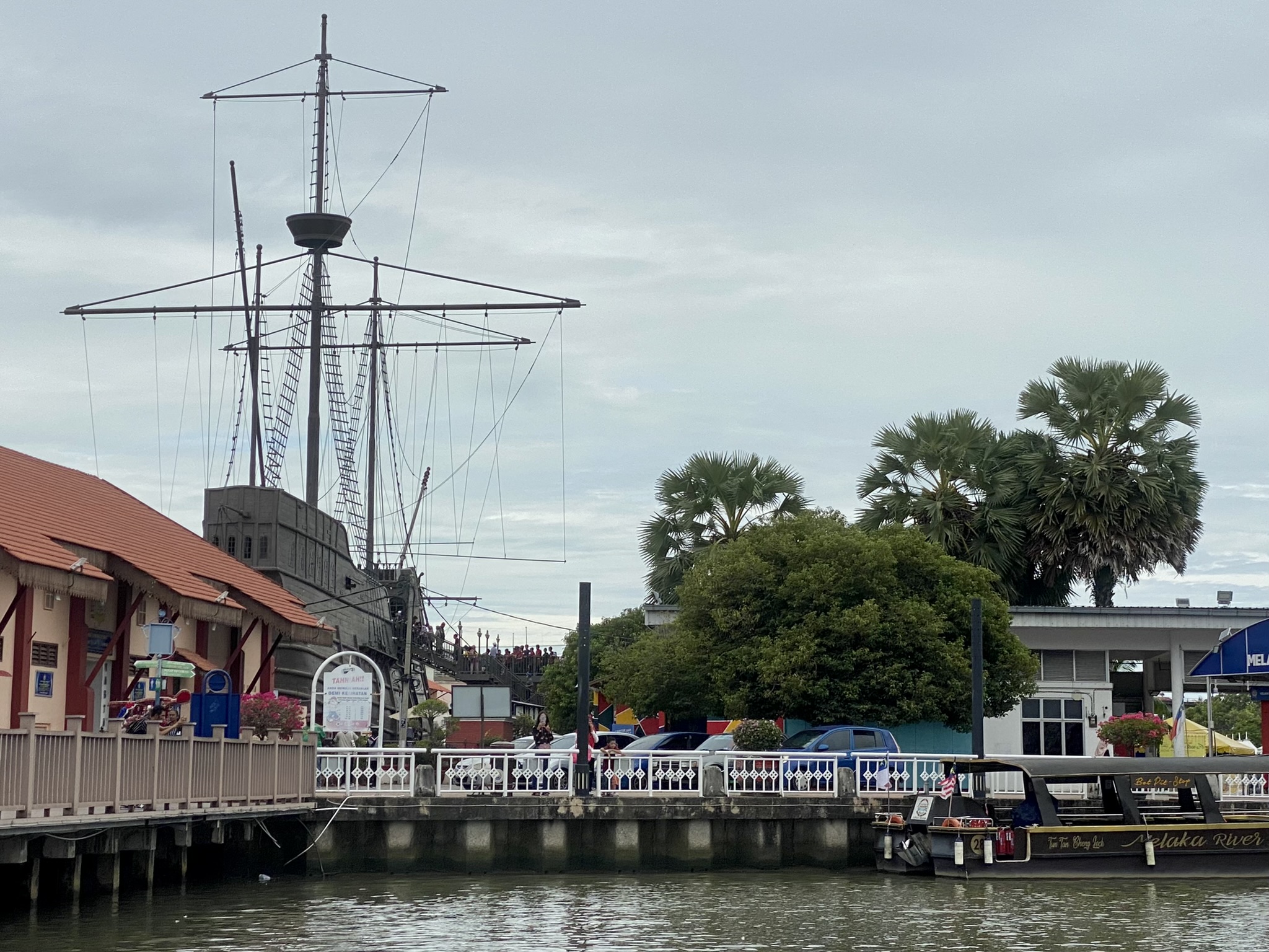 I’ll start with the river, as it was a really cute area and I did take one of the “famous” river cruises that takes about 45 minutes and gives a nice view of the art and bridges. The old church is interesting as it is leaning like the Tower of Pisa, so I named it the Leaning Church of Melaka! Oh, and I snuck a photo of the green screen photo they forced me take at the beginning of the cruise.