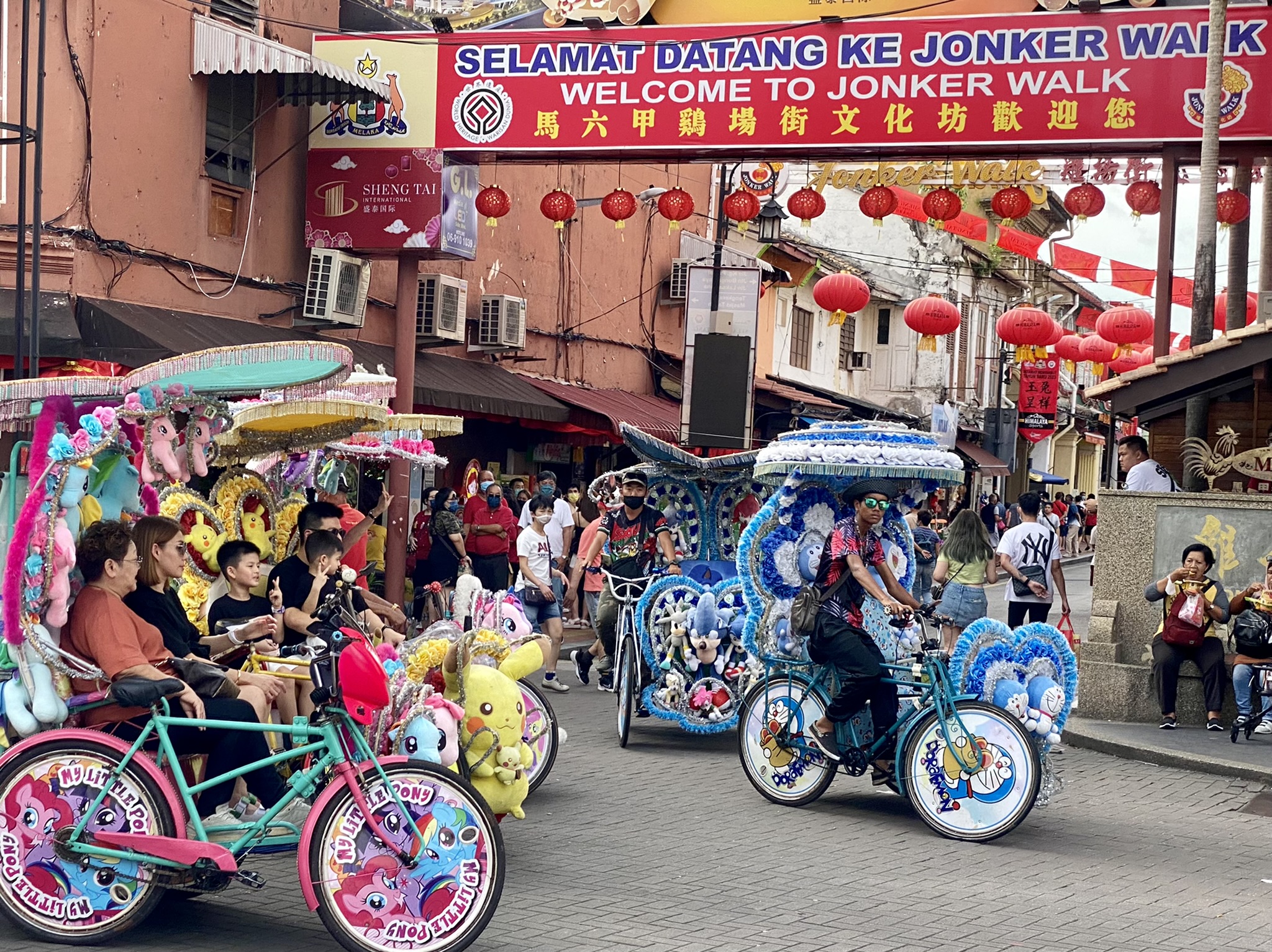 On the cruise, I met a funny guy named Bob from Australia, who is working in Kuala Lumpur, and had come to Melaka for the weekend. That evening, we bought each other a party hat and checked out the Jonker Street Night Market and took a ride on one of the amazing trishaws which are quite a thing here (of course, I chose Hello Kitty!). They are all lit up at night and ride around blasting dance music! Later on, we hit the bars on the river and I drug him in to a club for a bit of dancing.