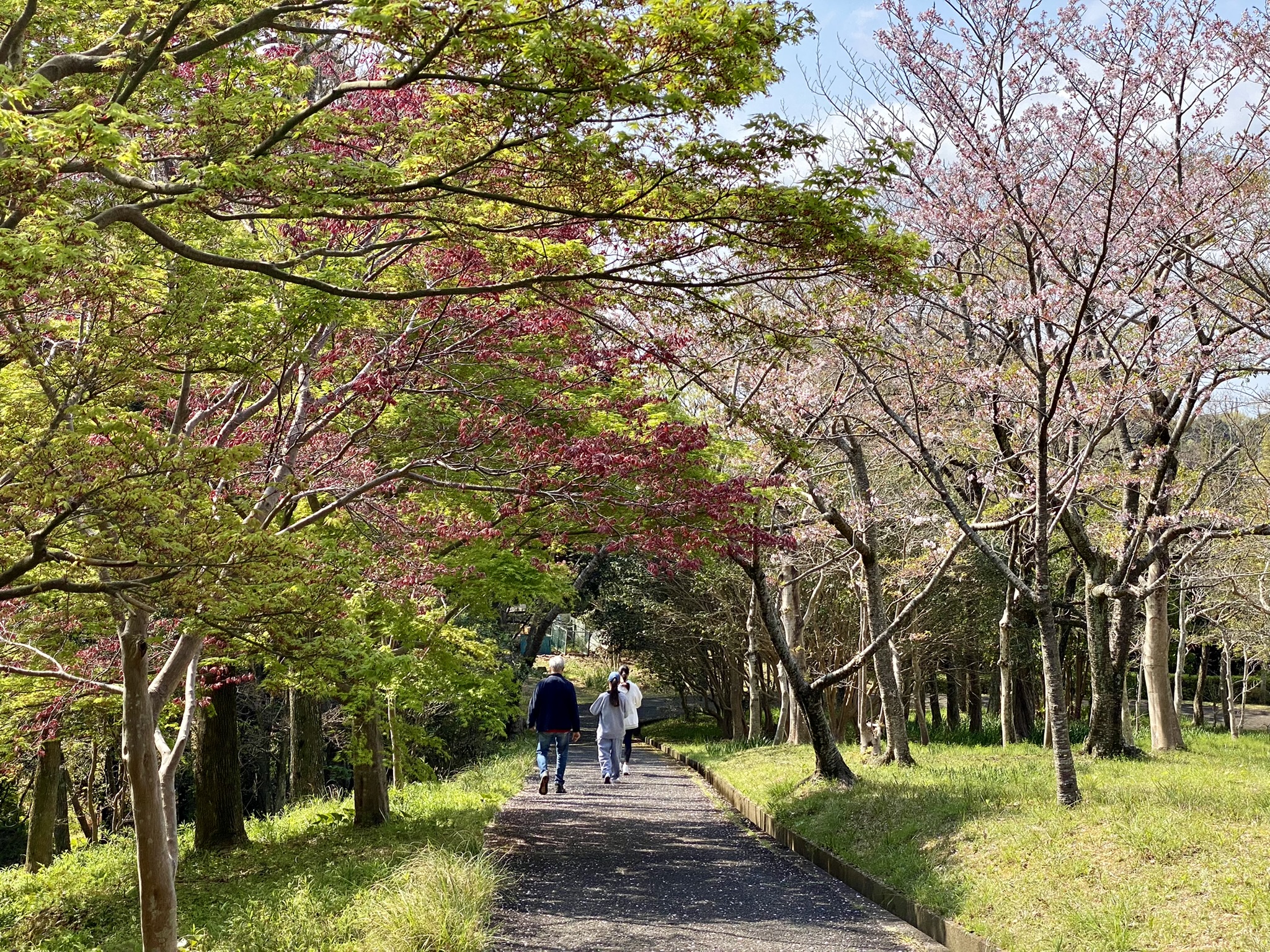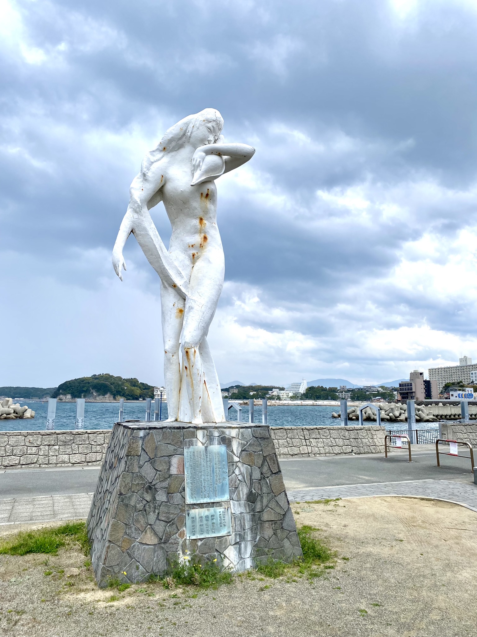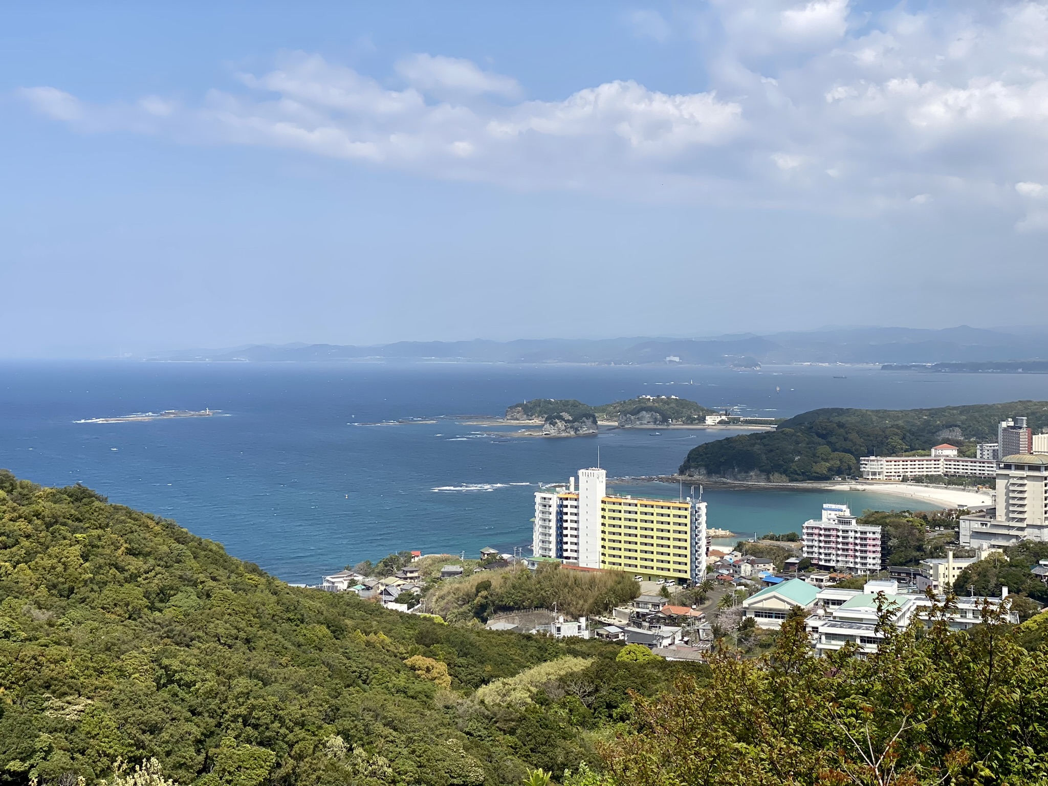 When I arrived at the hotel, a bit exhausted from the train and bus ride, plus a three hour wait until I could check in, I made my way to the building my room was in, just a bit down the road from the main building. When I walked in, I entered through the large communal kitchen and living room. It was a bit confusing and luckily I was greeted by a sweet couple who pointed me in the right direction. Once settled, I went back into the common area and met Junko and Rod. We had a nice chat, and I found out that this was her fathers home town and she spent a lot of time here growing up. She has now lived in Australia longer than she lived in Japan, as she went to study English after school and met Rod. They have two beautiful daughters who were also along for the trip. They were so sweet to invite me to join them the next morning to go to a park up on the hill known for its cherry blossoms. We had so much fun walking and taking pictures! Afterwards we visited a beautiful viewpoint overlooking the city and the beach where Junko pointed out some of her favorite spots they visited on family vacations.