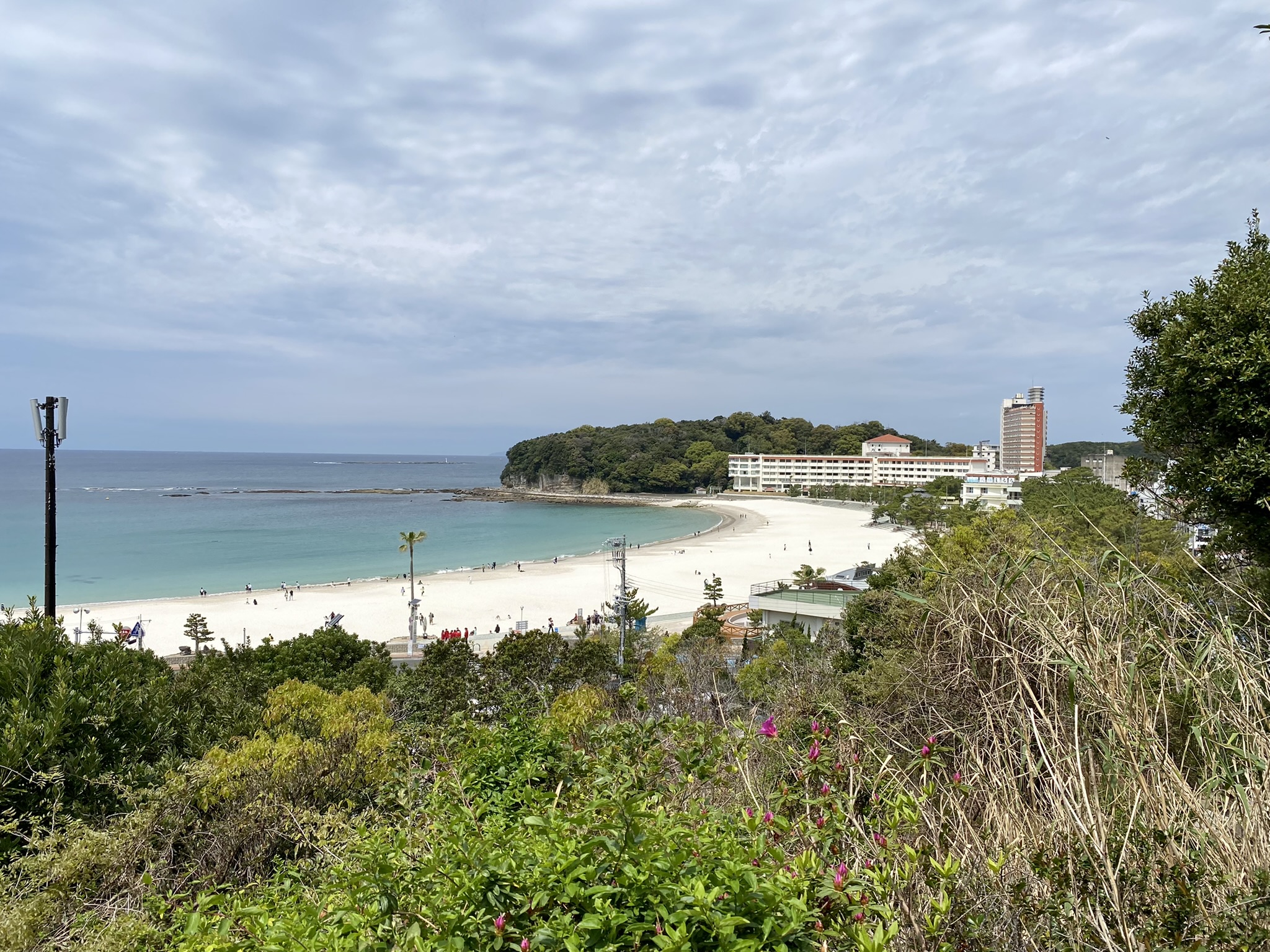 From Wakayama City, I took a train about an hour and a half south to reach Shirahama, an old onsen resort town. The name Shirahama means “white beach” in Japanese, and the 650 meter stretch, also called Shirarahama Beach, is the sister beach to Waikiki Beach in Hawaii. With a population of around 20,000 people, it is still a quaint little village with some beautiful sights and a fishing town vibe.