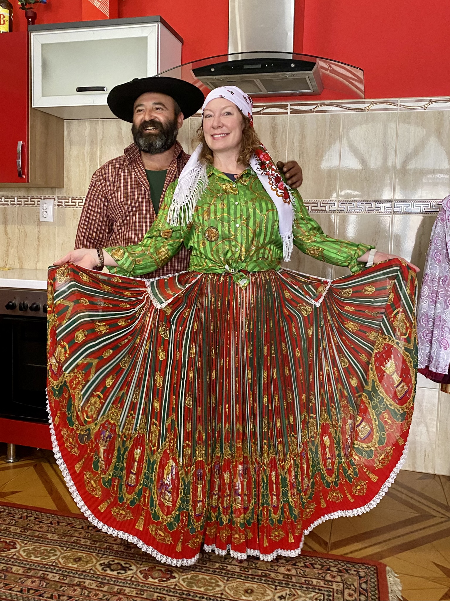 After Medias, we drove to a gypsy community in Brateiu. Here we were welcomed into the home of Victor and his family (in this typically very closed community) where we shared tea and some homemade cherry liquor while discussing the Roma life. Victor and his wife had an arranged marriage when he was 12 and she was 10, after his mother passed and a female was needed in the household. He became an amazing metal worker, and she makes clothing which Jenny was invited to model.