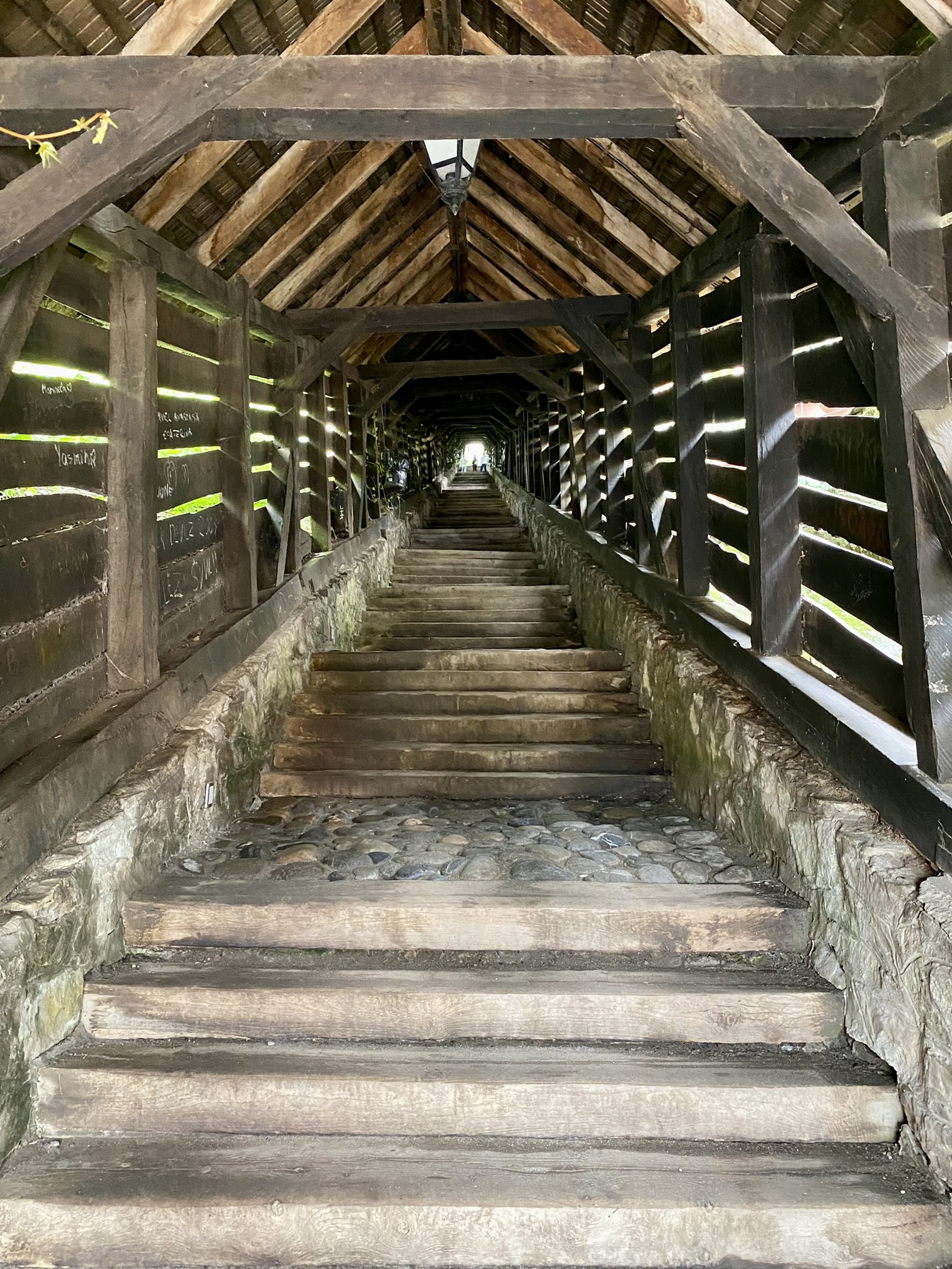 Today, Sighisoara is home to several UNESCO World Heritage Sites, and famously known for being the birthplace of “Dracula”. During the 15th century, the town was mentioned by Prince Vlad Dracul, the father of Vlad the Impaler. It is known that Vlad was born here, but there is no proof about his home or the room he stayed in. Even with lack of proof, the town is definitely capitalizing on the theory! Below you will also see the famous large covered stairway which allowed the children walk to school while staying safe and out of the elements within the walls.