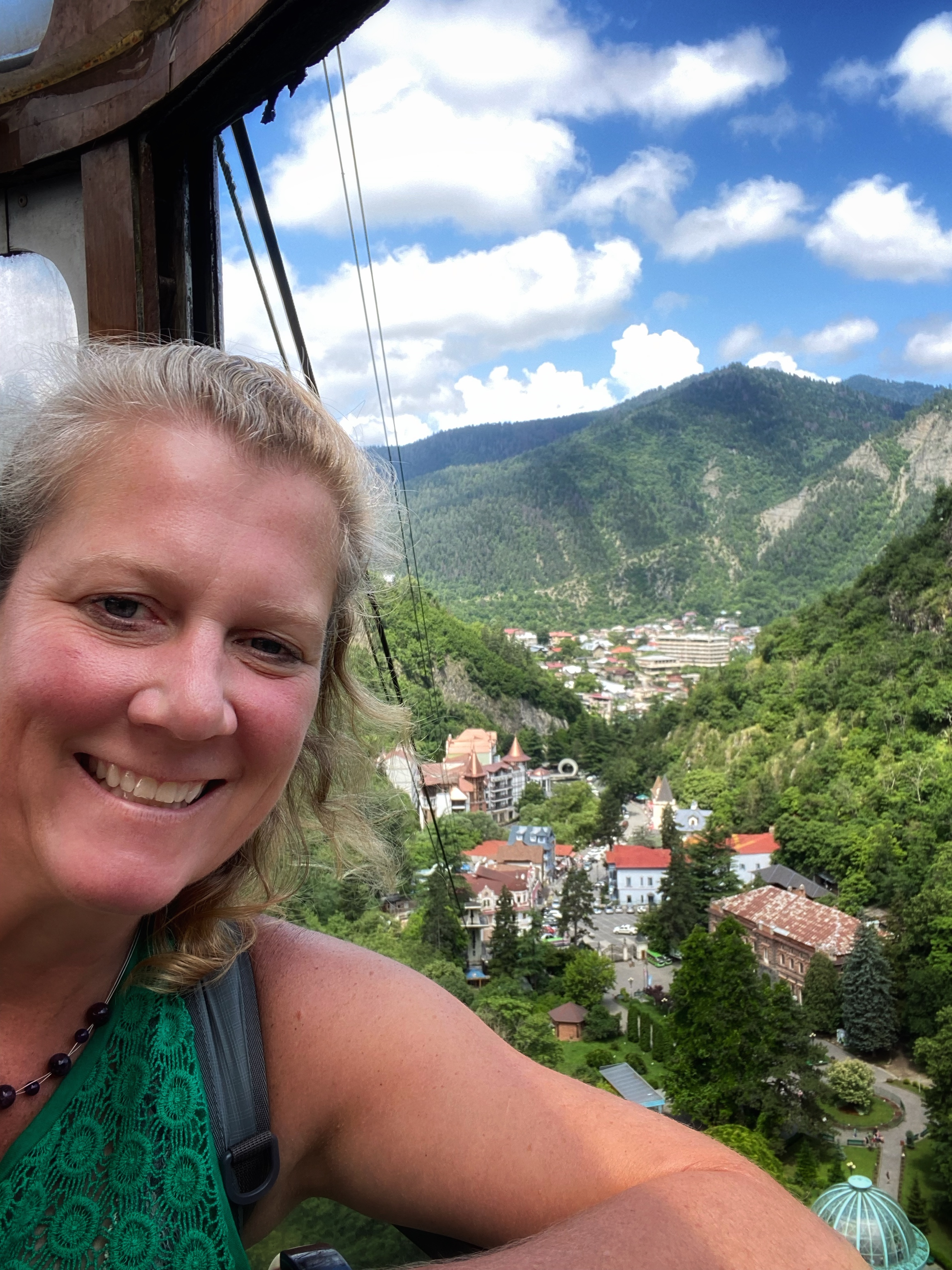 Once deciding the “natural” water was not my thing, I headed towards the 1962 Soviet cable car which can transport 25 people 376 meters over the valley to the top of the adjacent mountain. I can’t imagine 25 people in the car, but it was a nice ride for the operator, me, and one couple. The views over the mineral park and the city were beautiful! There is even an old Ferris wheel at the top, but unfortunately it’s no longer used, so a ride was out.