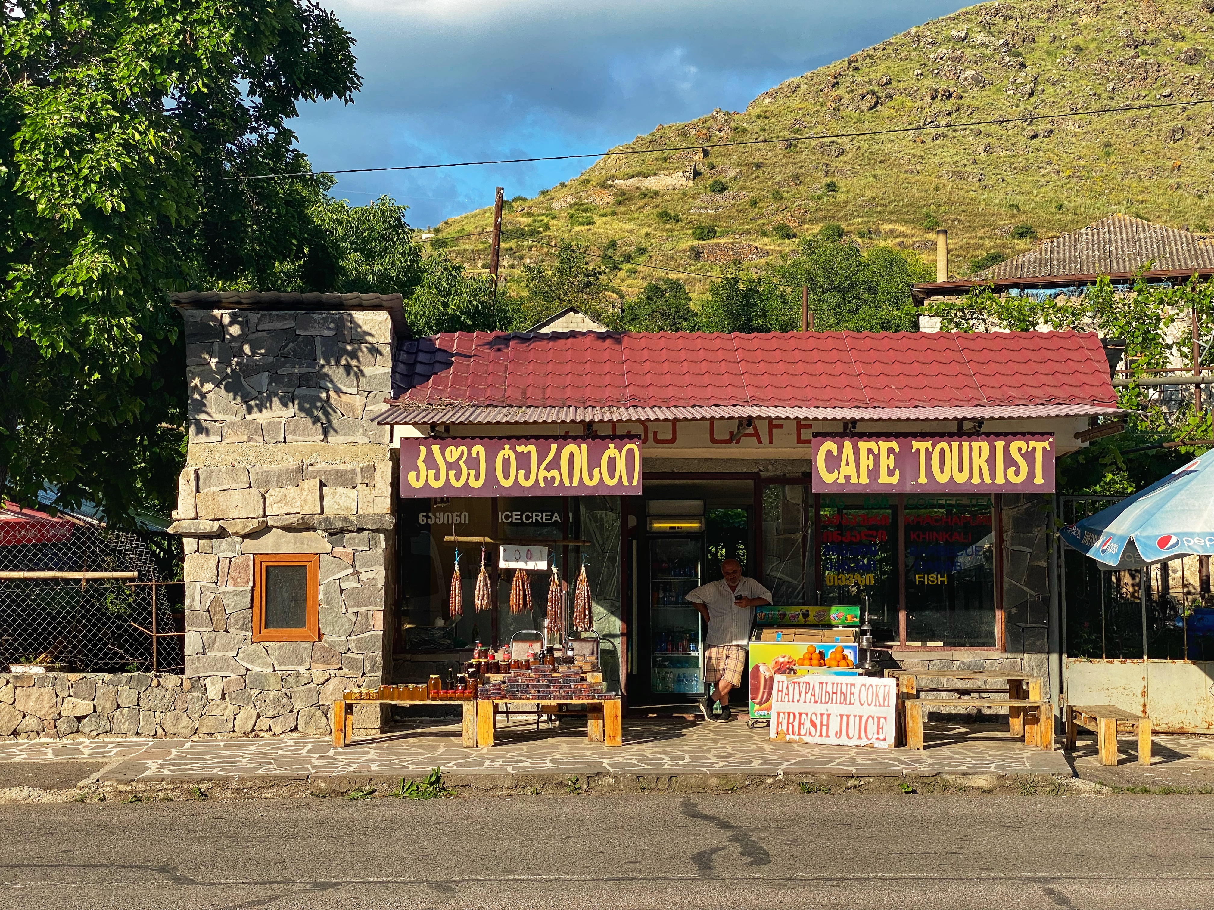 After a couple of hours of climbing around, we loaded up for the 5 hour drive back to the city. We made one stop on the way to stretch our legs and see a fun castle along the Kura River before a late arrival in town. We all got a kick out of the roadside café at our stop, Café Tourist!